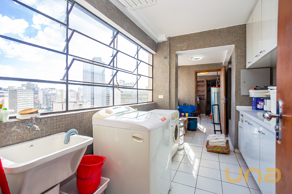 Lavanderia extremamente ampla, ideal para quem prioriza praticidade
