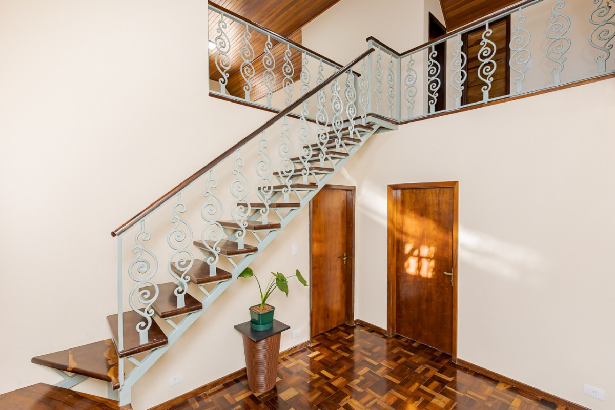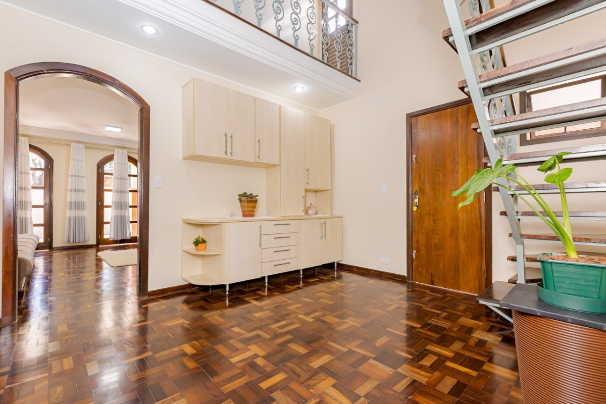 Detalhes: Residencia no charmoso Jardim Verginia III, uma super localização pra você morar bem, ao lado de Santa Felicidade. São aproximadamente 400 m de área total construída em 2 pavimentos, ótima conservação, cômodos amplos e arejados, com 5 quartos (sendo 2 suítes, 1 delas com hidromassagem dupla), 3 salas (estar, jantar e íntima), copa e cozinha com armários e tampos em granito, terraço com uma linda vista, nos fundos uma edícula em 2 pisos, sendo embaixo lavanderia, salão, churrasqueira e banheiro, e no piso de cima, salão em vão livre e banheiro. Vaga para até 5 carros (2 cobertos). Imóvel pode ser residencial ou comercial. Terreno medindo 417,97 m (12,50 x 33,51 x 33,37 x12,50). Próximo a av. Vereador Toaldo Túlio, Super Muffato, Atacadão, farmácias e todo o comércio em geral. * Possibilidade de entrar um apto menor valor como parte de pagamento. Agende sua visita, vale a pena conferir! *Valores e taxas sujeitos a alteração