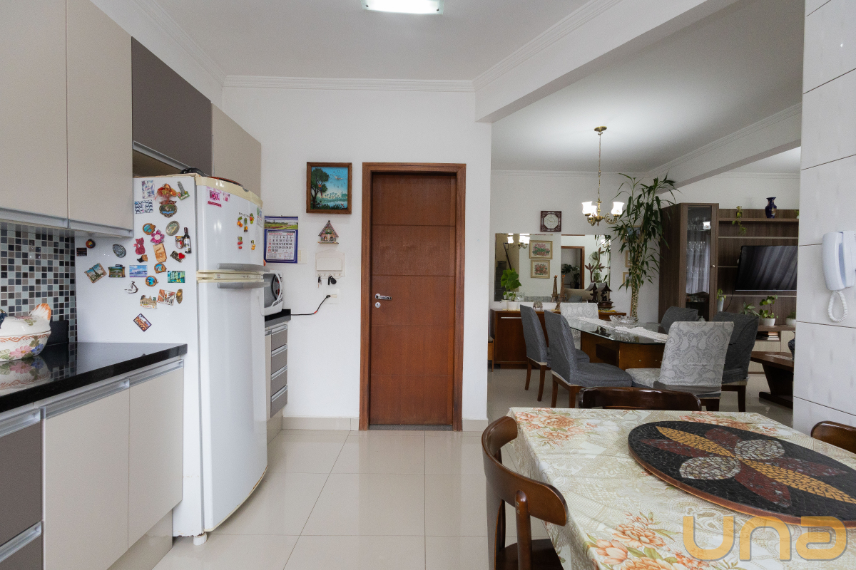 • Cozinha espaçosa com armários embutidos e exaustor, integrada à área de convivência.