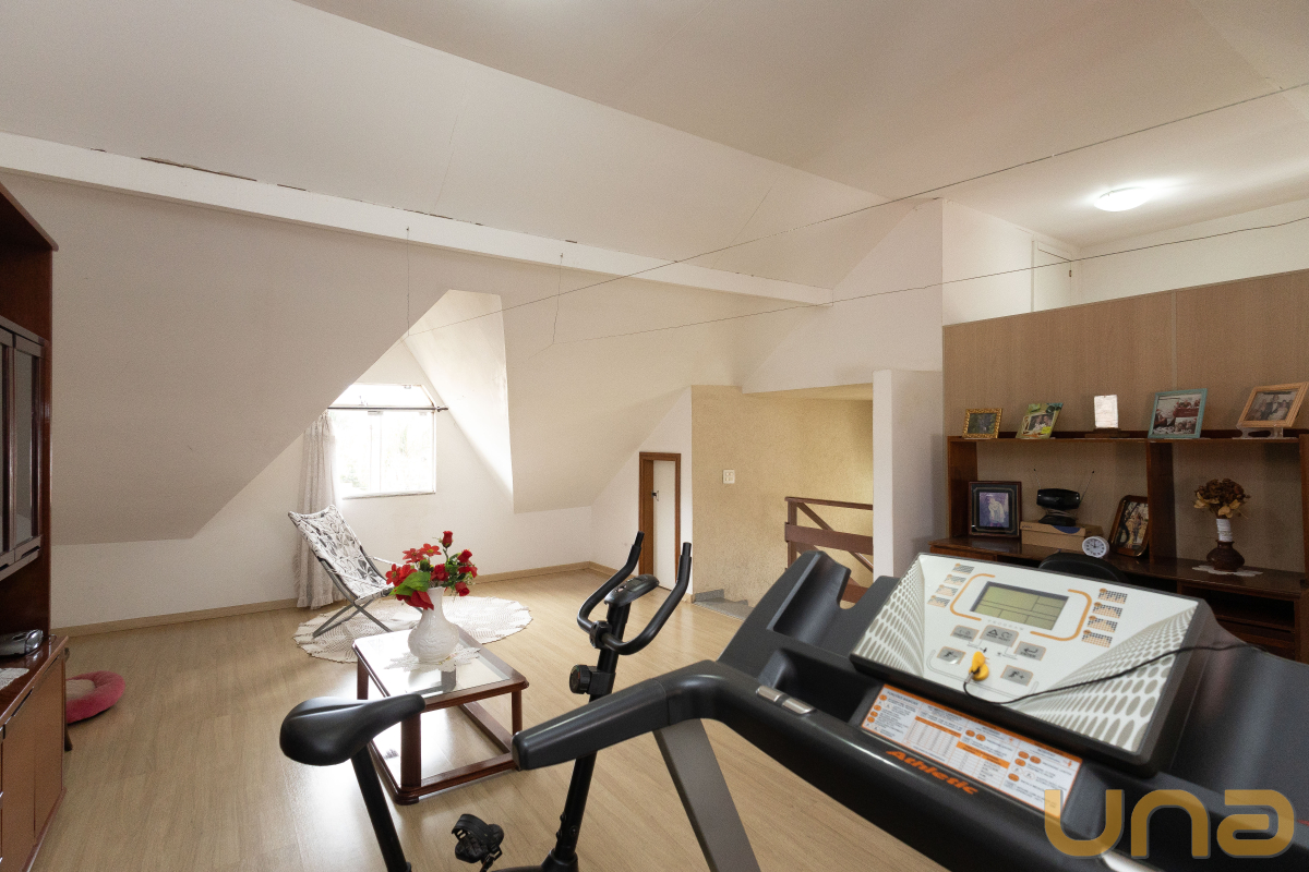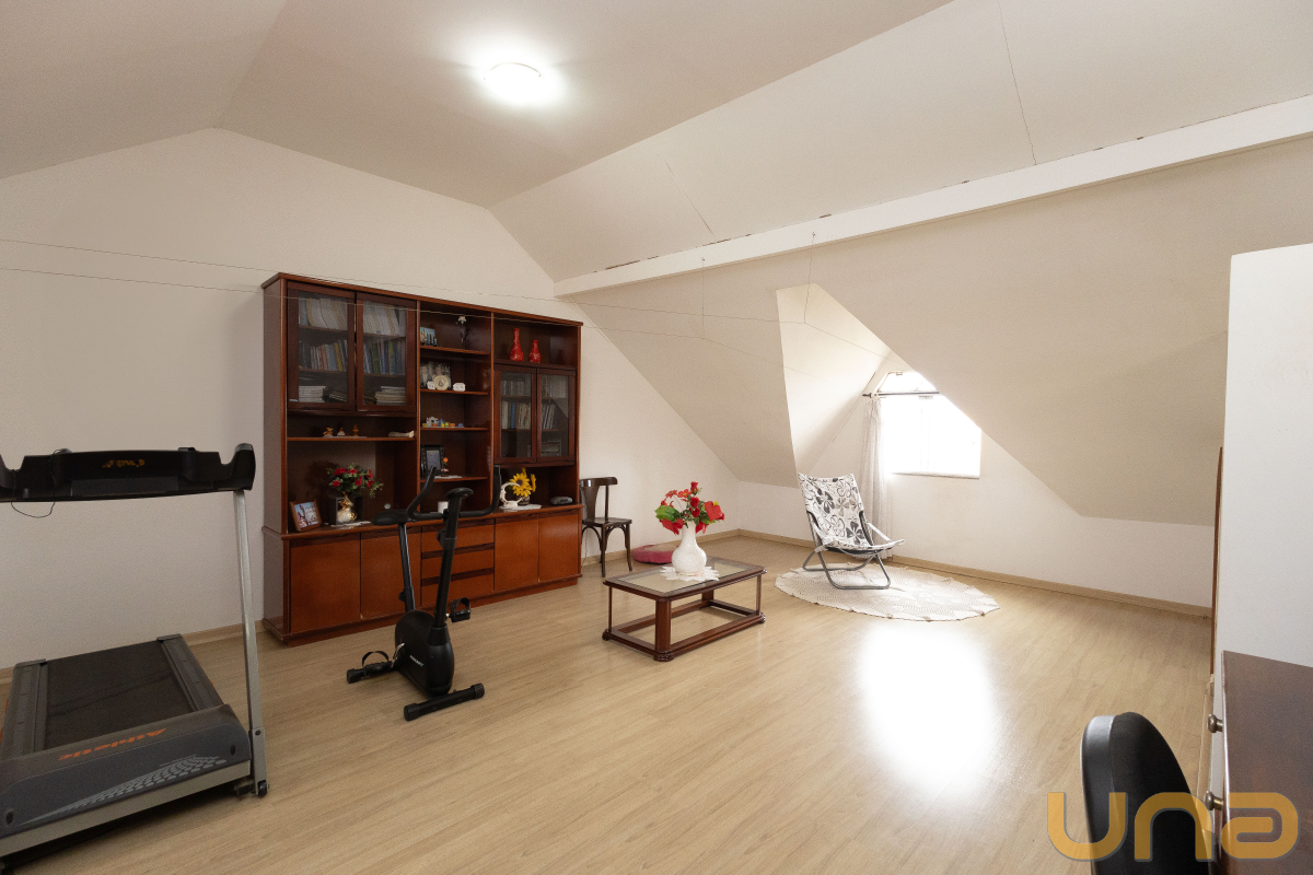 • Amplo ático com piso laminado de madeira, ideal para escritório, sala de TV ou home studio.