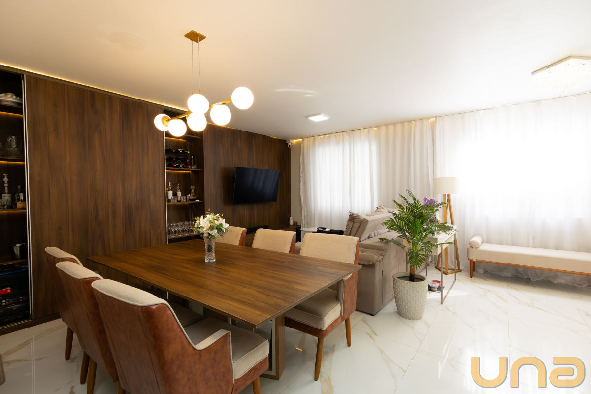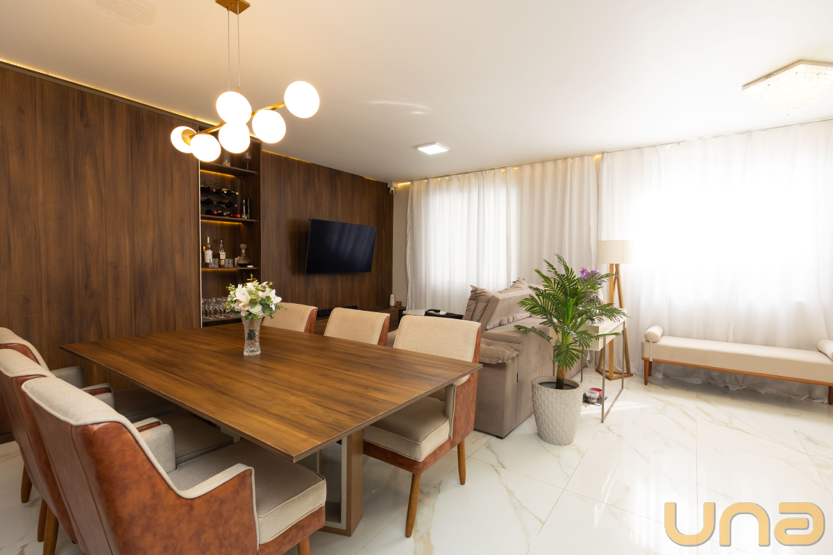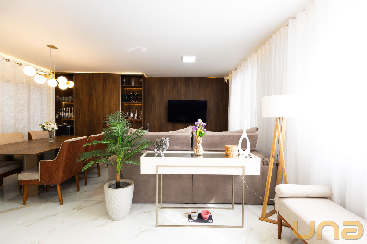 - Sala três ambientes, composta por: Sala de tv (com rack de 2,75m), sala de jantar (com cristaleira de 3m, mesa(2,20mx1,20m) com 06 cadeiras) e sala de estar/hall de entrada.