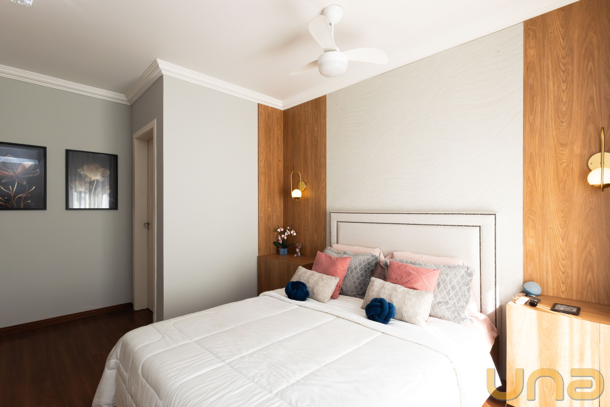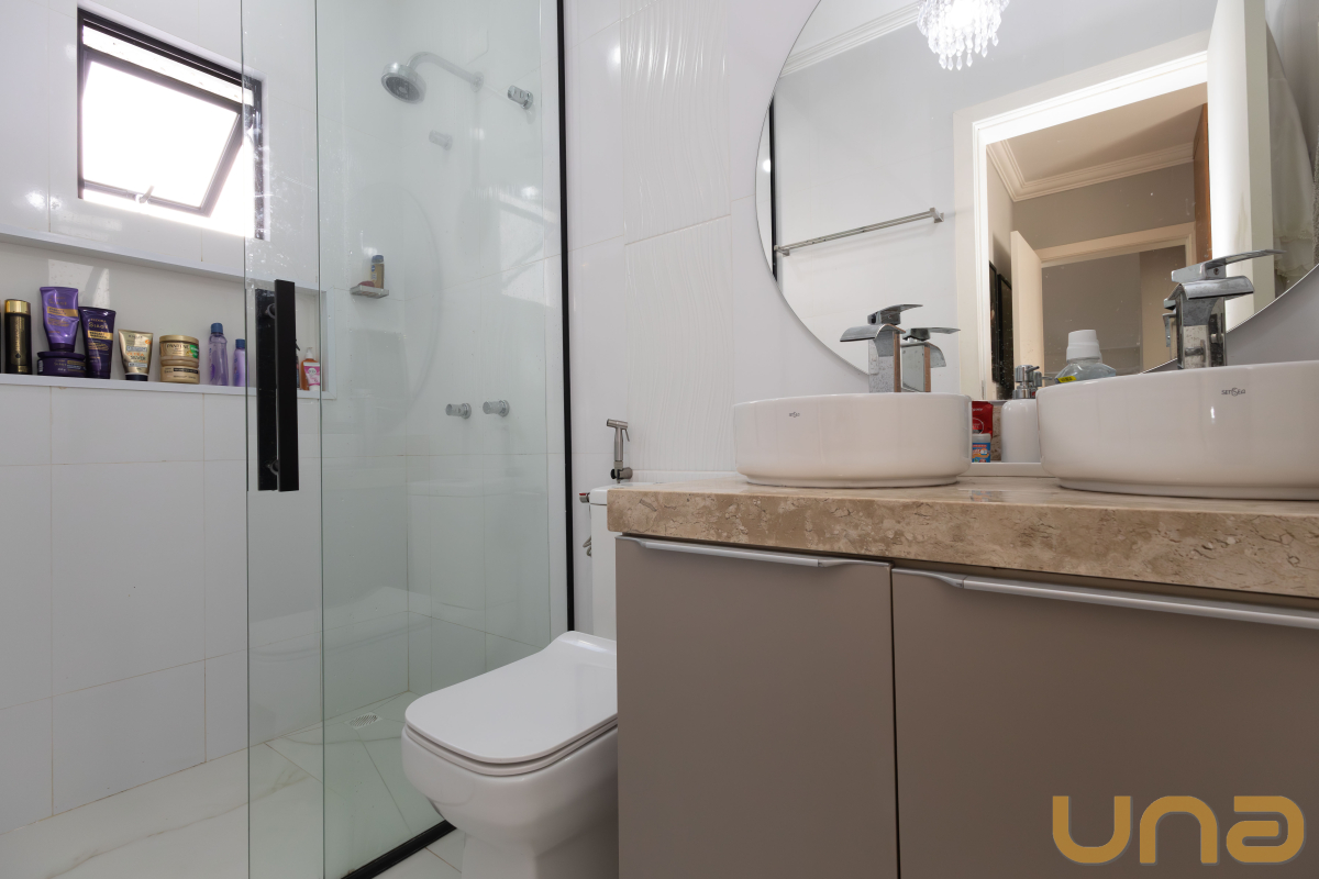 - 03 quartos, sendo 01 suíte com sacada (quarto suíte com armários e ar condicionado, banheiro da suíte com pia dupla, suporte para 2 toalhas e quarto 2 com armário).