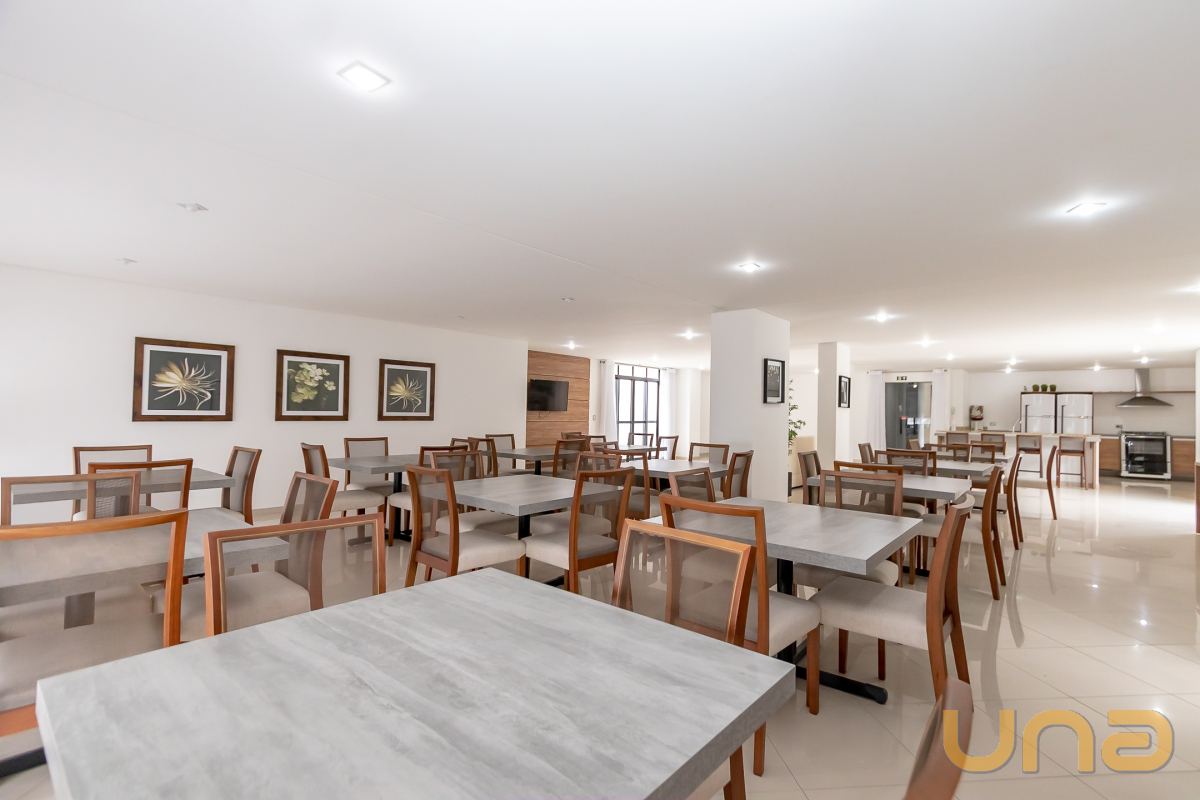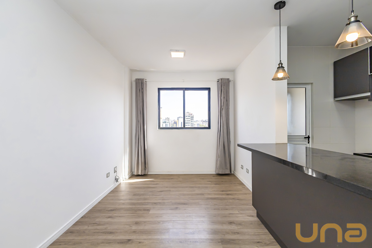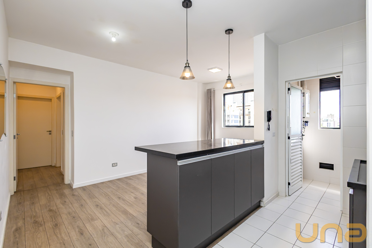 Apartamento no Edifício Amsterdam nas Mercês. Região com amplo comércio, serviços e fácil acesso às principais ruas da cidade. O imóvel é ensolarado e conta com uma sala para dois ambientes, integrando-se à cozinha em estilo americano, equipada com armários planejados.