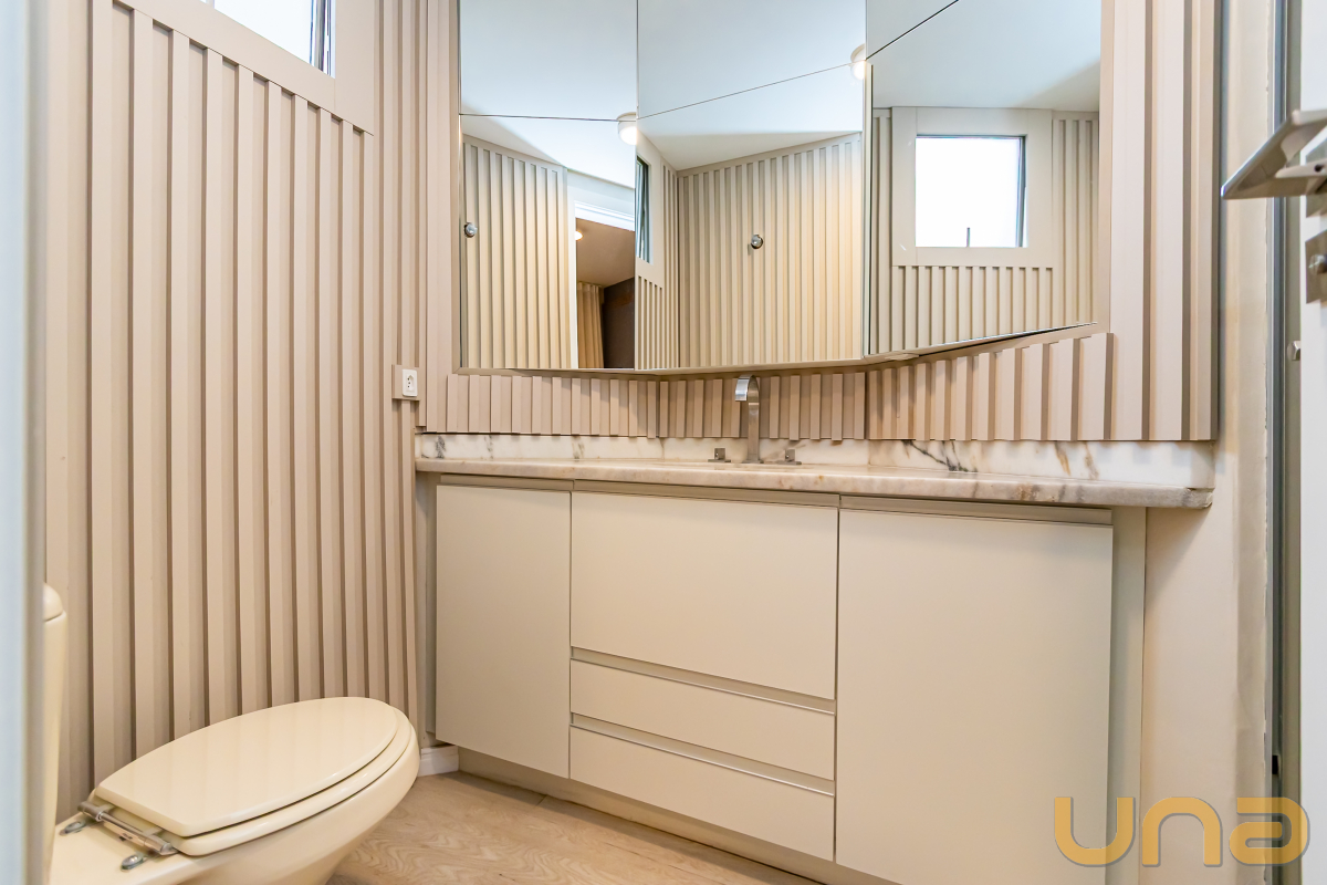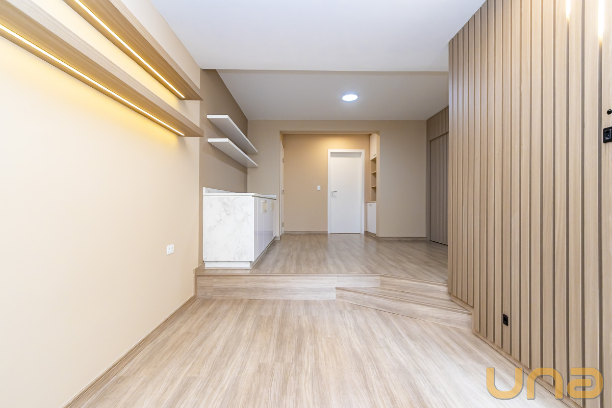 O imóvel foi totalmente reformado e conta com uma sala espaçosa para dois ambientes, sacada com balcão e iluminação em LED, além de uma cozinha moderna equipada com armários planejados, fogão por indução, coifa e forno. Possui ainda uma área de serviço ampla e bem ventilada, além de um depósito.