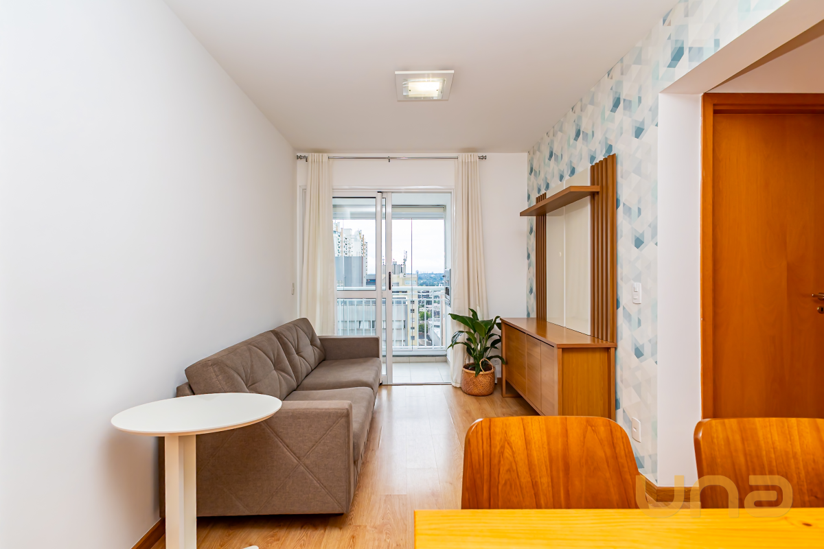 Este imóvel ensolarado e semi-mobiliado foi projetado para oferecer o máximo de conforto. A sala, ideal para dois ambientes, é equipada com mesa de jantar, cadeiras, sofá e painel para TV, criando um espaço acolhedor e funcional. A sacada ampla, no modelo Reiki, conta com churrasqueira à gás , perfeita para momentos de lazer.