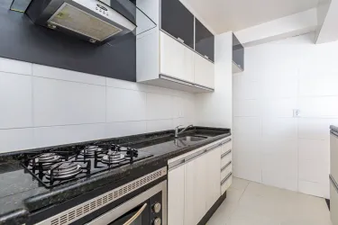 Apartamento com sala ampla, painel para TV, cozinha com armários planejados, área de serviço conjugada, 02 dormitórios com armários sendo 01 suíte, banheiros com box em vidro, aquecimento a gás e armários.
