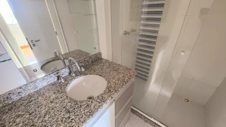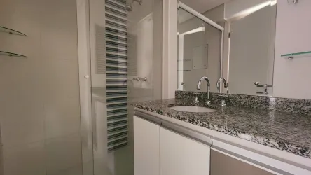 - Banheiros: Social e suíte com box em vidro temperado, armários e tampos em granito.