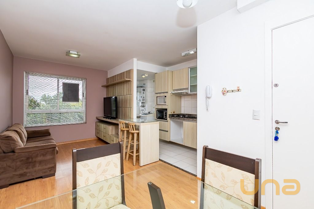 Apartamento mobiliado, finamente decorado e pronto para morar. São 2 quartos com armários e camas box, sala ampla com TV e mesa de jantar, cozinha completa com eletros e lavanderia equipada. 1 vaga de garagem individual.