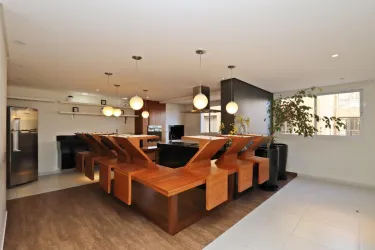 Condomínio completo, possui: salão de festas, academia, brinquedoteca, churrasqueira, deck, espaço gourmet, lavanderia, piscina adulta coberta e climatizada, playground e quadra de esportes.