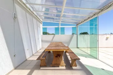 O condomínio oferece terraço com churrasqueira e uma linda vista, ideal para momentos de lazer com família e amigos.