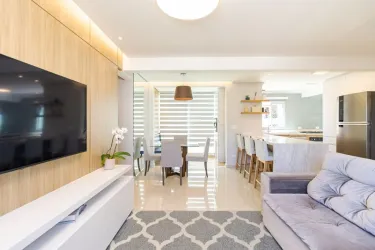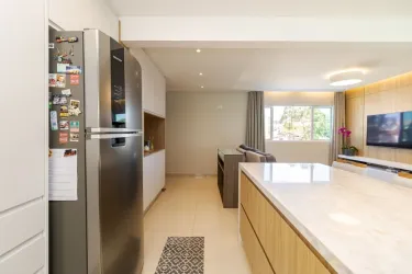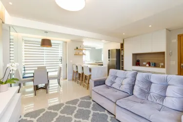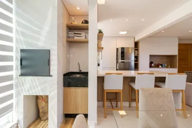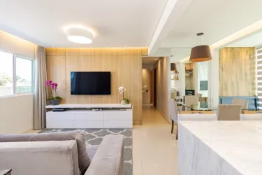 São 3 quartos (sendo 1 suíte e 1 com sacada), além de banheiro social. A área de living é um dos grandes destaques, com sala ampla para dois ambientes e sacada integrada com churrasqueira, criando um ambiente perfeito para receber e aproveitar momentos especiais. A cozinha é funcional e bem equipada, com área de serviço separada. Conta ainda com 1 vaga de garagem individual.