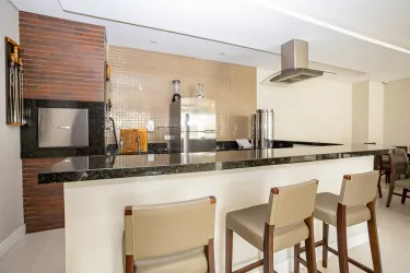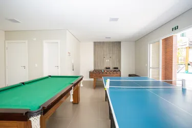 O condomínio conta com portaria remota, ampla área de lazer com piscina, quadra de esportes, salão de festas decorado e com churrasqueira, espaço gourmet decorado, academia equipada, espaço kids e sala de jogos equipado.