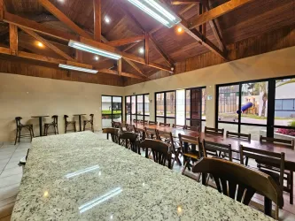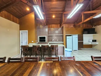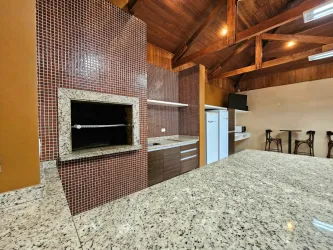 - Churrasqueira decorada e equipada para momentos de lazer;