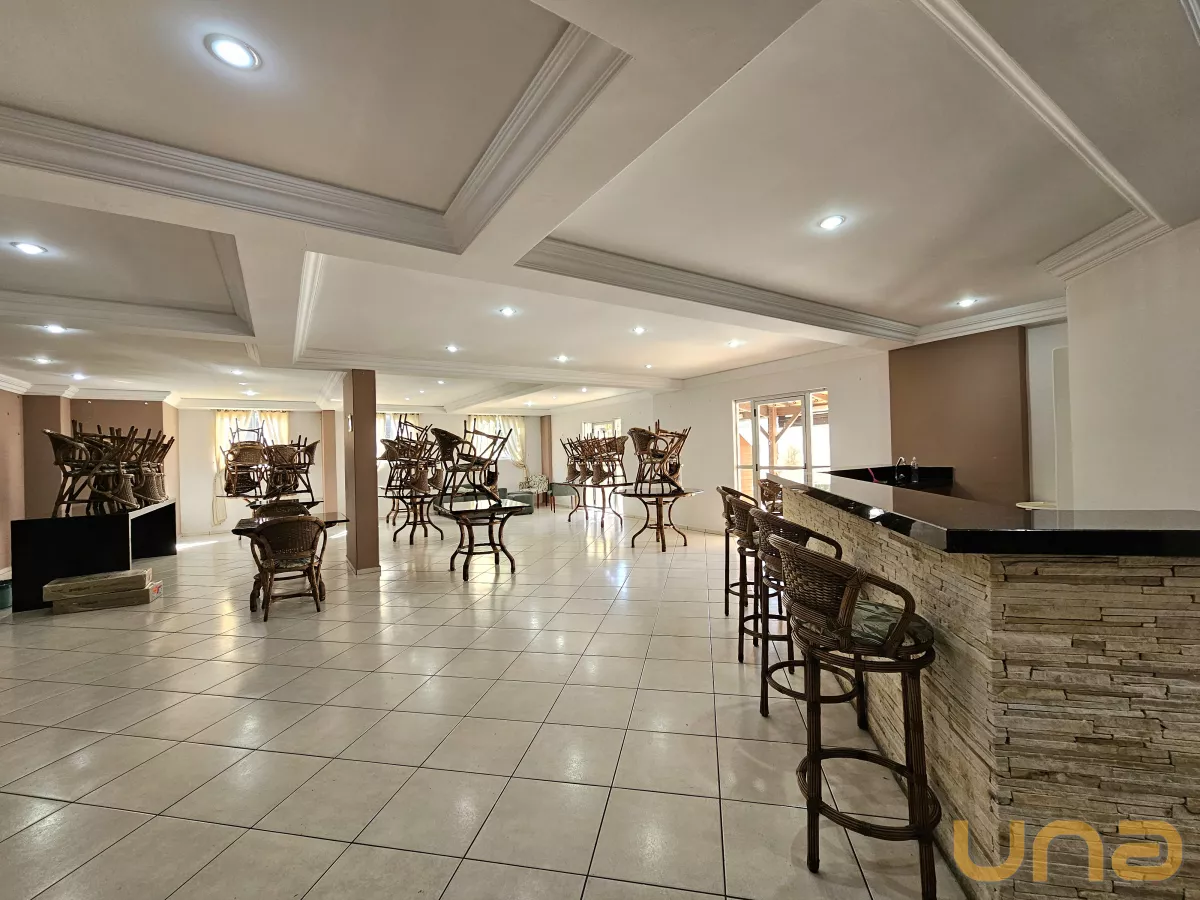 O condomínio conta com portaria 24 horas, amplo hall de entrada, salão de festas decorado, churrasqueira, playground e área de convivência.