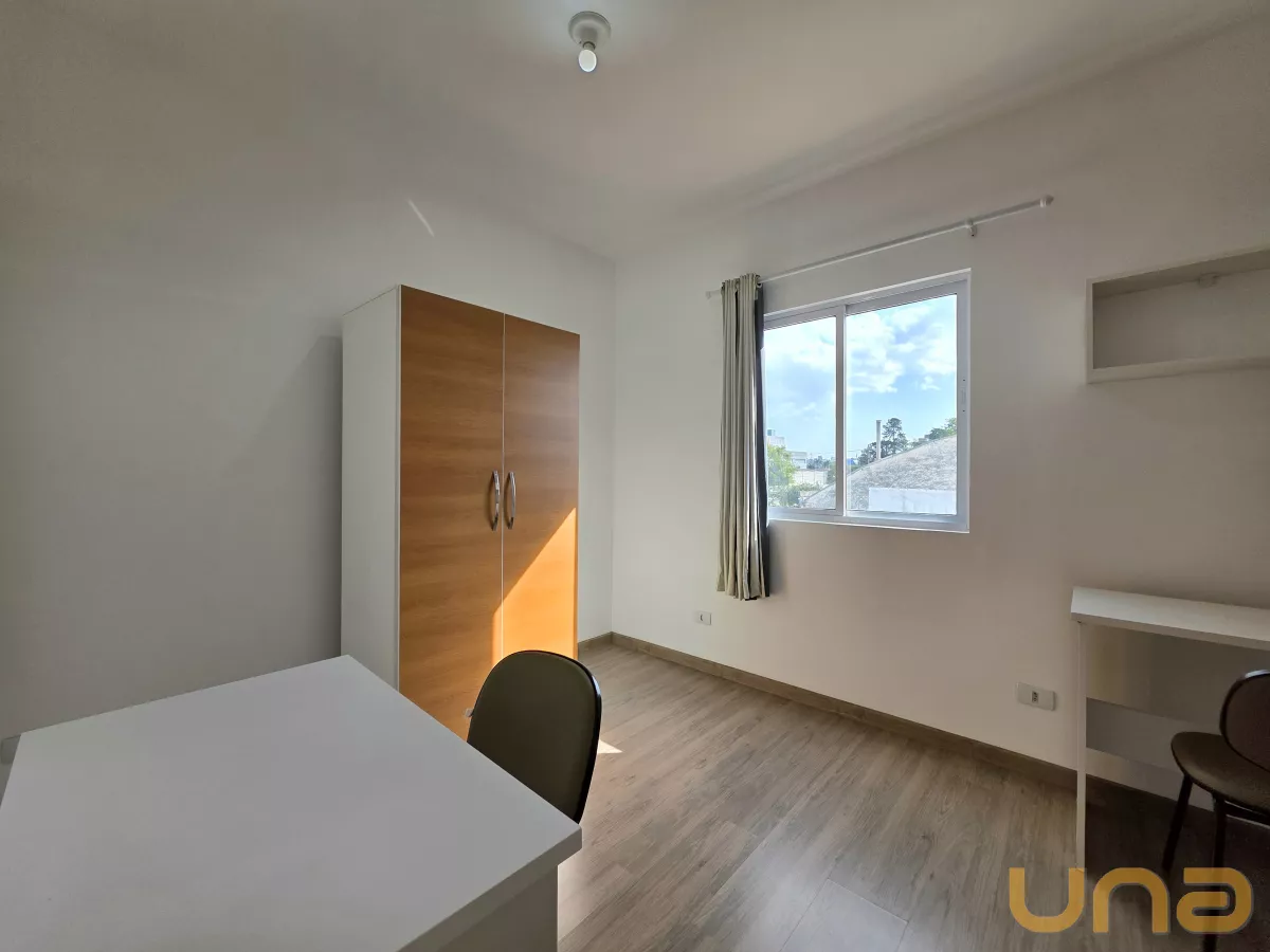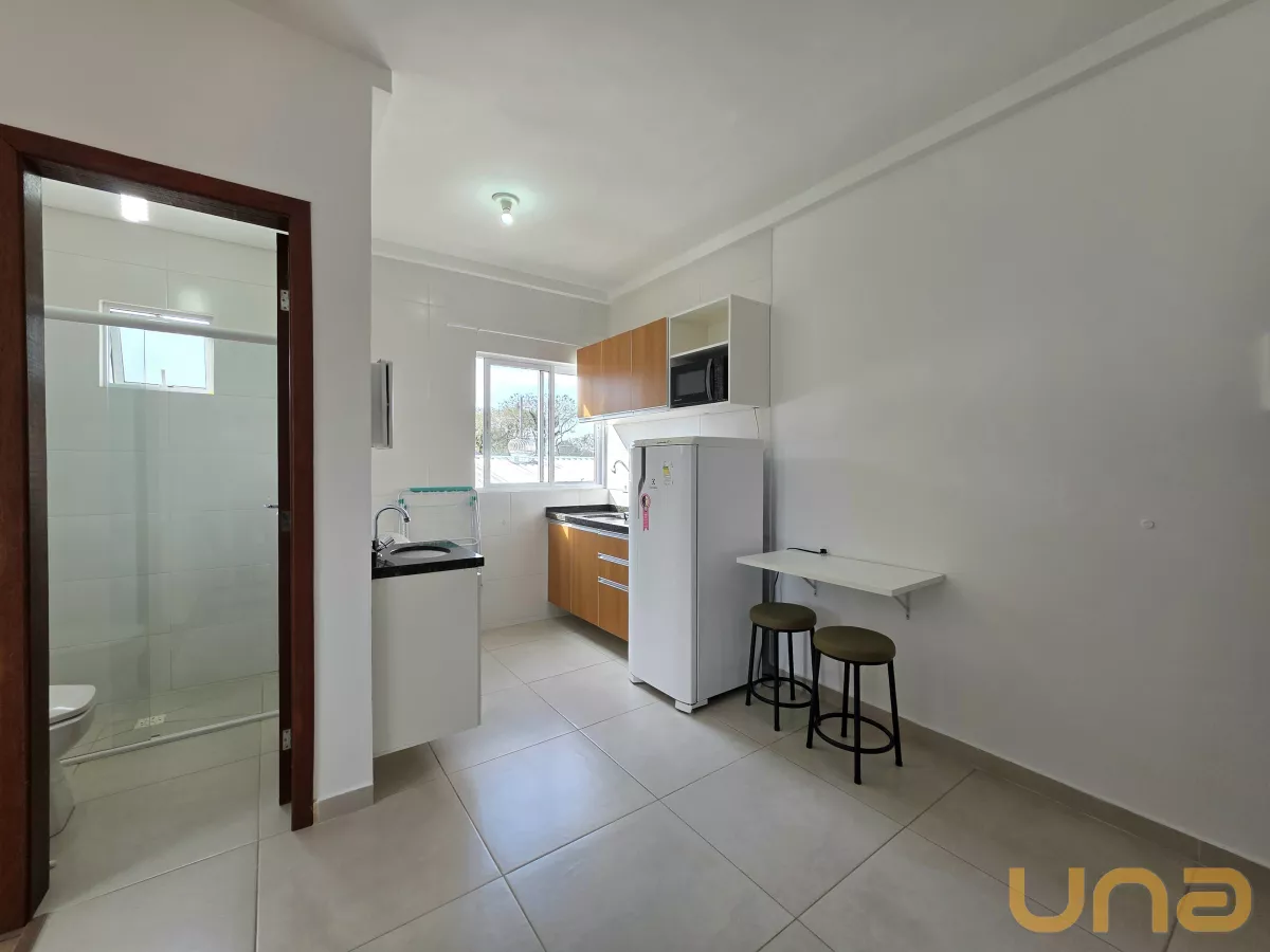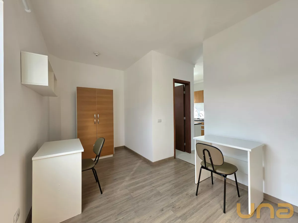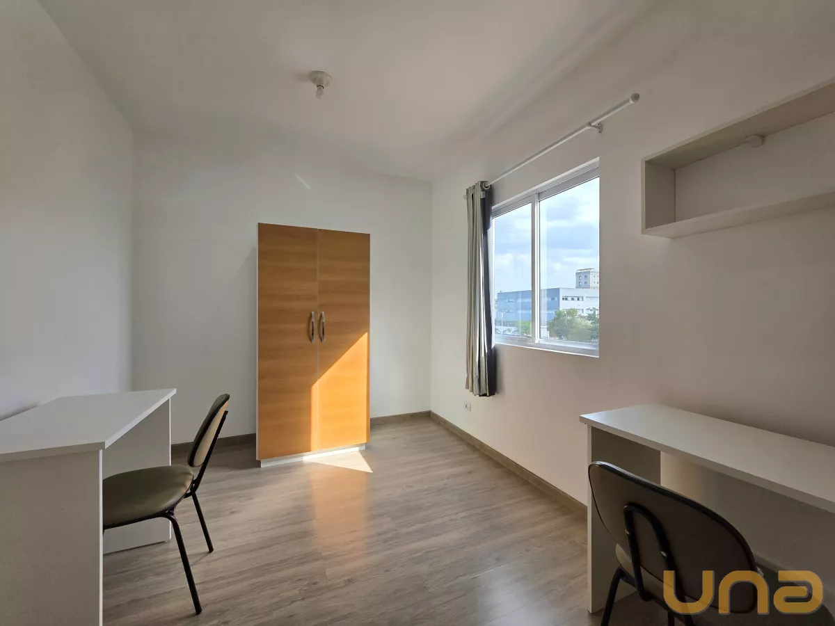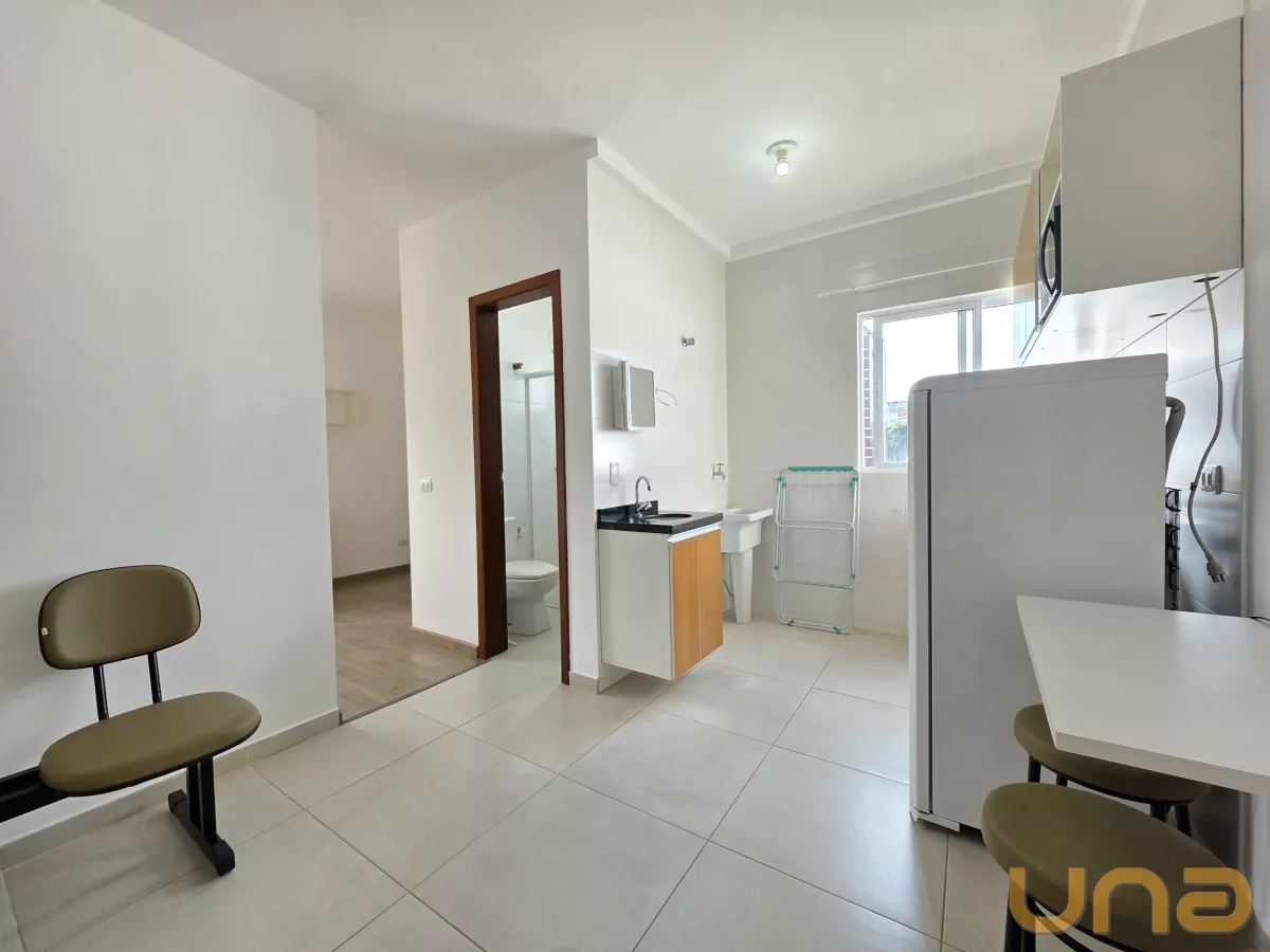 Apartamento/Studio mobiliado para locação em Curitiba, no bairro Rebouças, Ed. MM Residence, localizado em frente a PUC/Pr.Este Apartamento/studio comporta hospedagem para 2 pessoas e contém uma sala com painel em madeira MDF com TV de LED 28", longarina de 2 lugares, cozinha com armário, geladeira, micro-ondas, fogão elétrico de 2 bocas, quarto com duas camas de solteiro, dois armários de duas portas, duas escrivaninhas com cadeira, estante, banheiro social com box em vidro temperado, área de serviço com varal de piso e uma vaga de garagem opcional.Condições de locação:- Valor do aluguel R$ 2040,00; - Valor da bonificação R$ 340,00; - Valor líquido R$ 1700,00. OBS: 1) O valor do condomínio informado está sujeito a alterações sem aviso prévio, varia de acordo com o custo de administração do condomínio e está subtraído das taxas extraordinárias. Sugerimos consultar o valor junto a administradora/síndico antes do fechamento da locação;2) O seguro incêndio do imóvel será parcelado em doze vezes. 3) Será cobrado taxa de Fundo de Conservação do Imóvel de 5%, aplicado sobre o valor do aluguel.