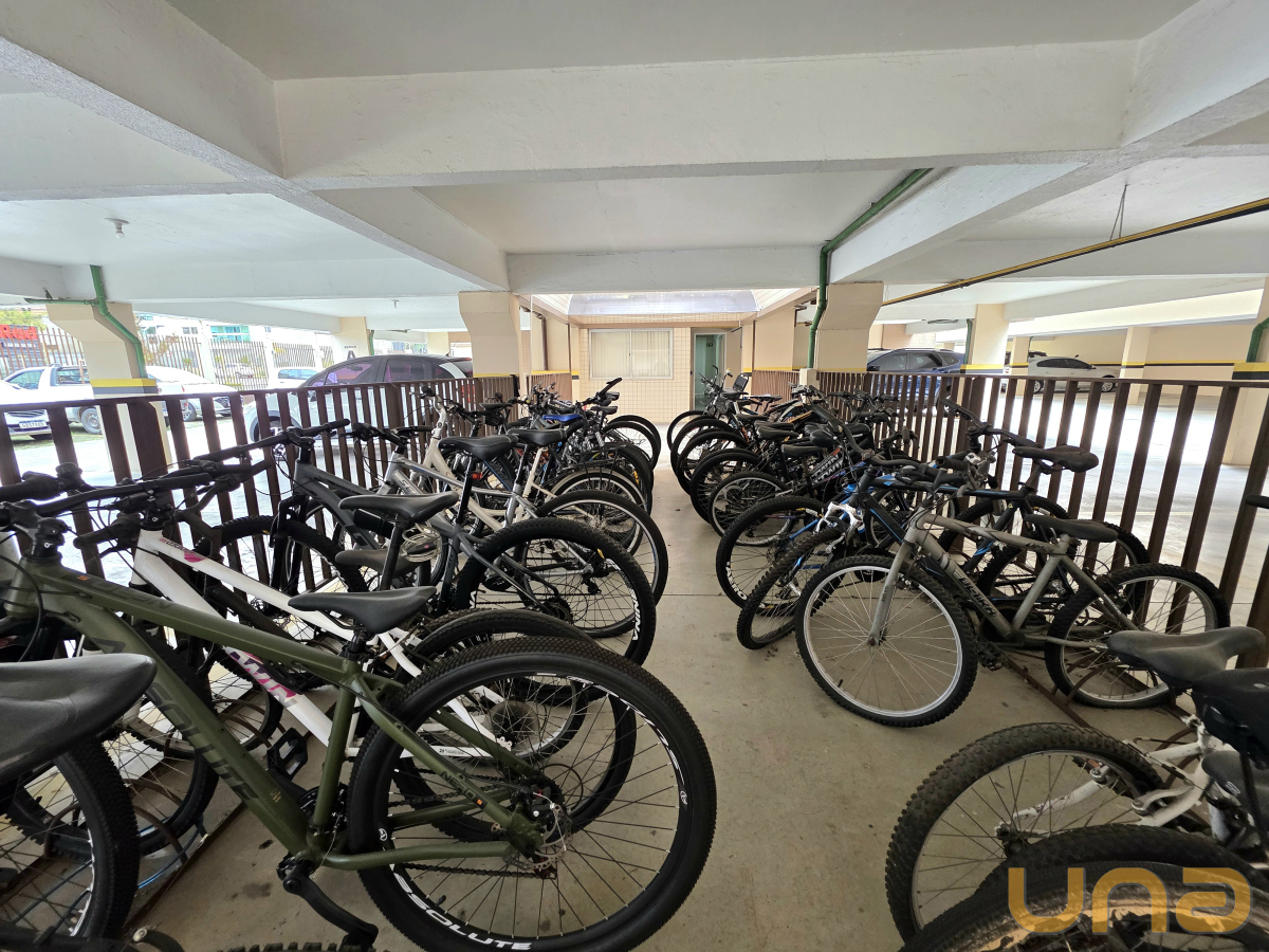 O condomínio conta com salão de festas, playground, quadra esportiva e bicicletário.