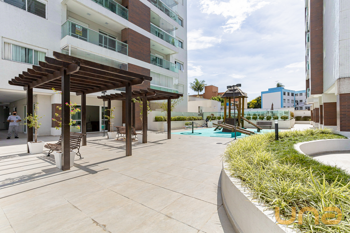 O condomínio, com portaria remota e ampla área de lazer, como: espaço gourmet com churrasqueira, salão de festas, espaço Kids, espaço fitness, sala de jogos, tudo decorado e equipado, piscina adulto e infantil, quadra de esportes, playground.