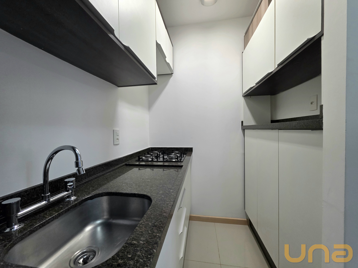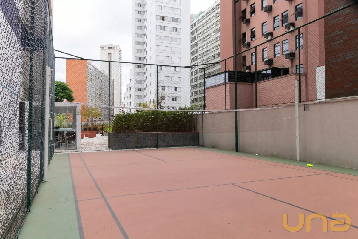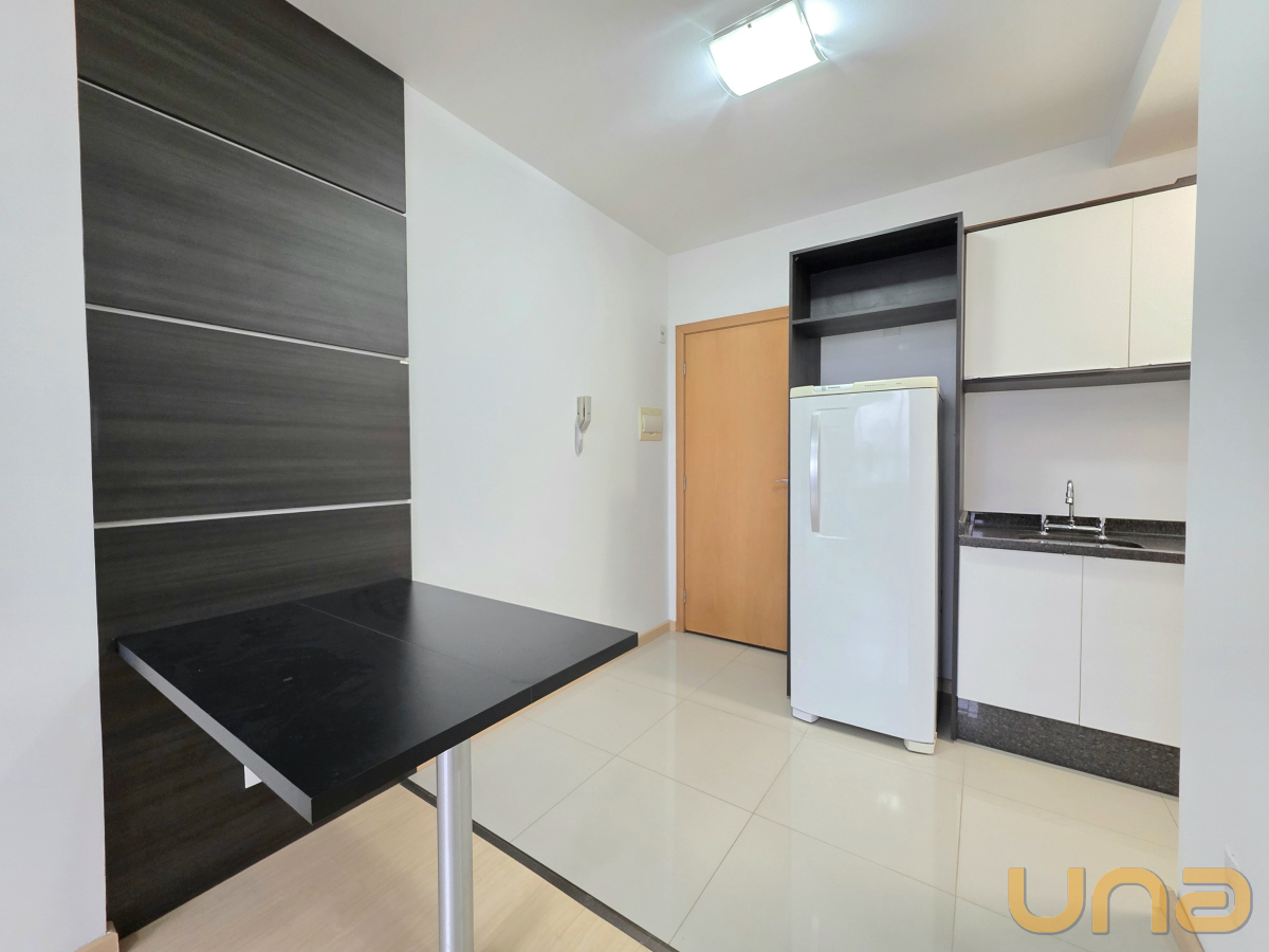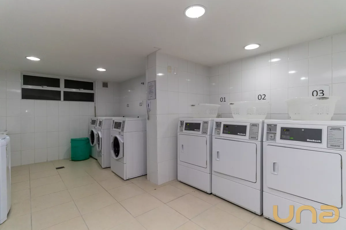 Contendo 1 dormitório com armário embutido, cama box de casal, sala para 2 ambientes com rack e painel com TV, cozinha com armário embutido, fogão cook top, geladeira, mesa, banheiro com box em vidro temperado, armário e espelho. O prédio oferece lavanderia de uso coletivo. O aquecimento de água para o chuveiro é através do sistema de caldeira.
