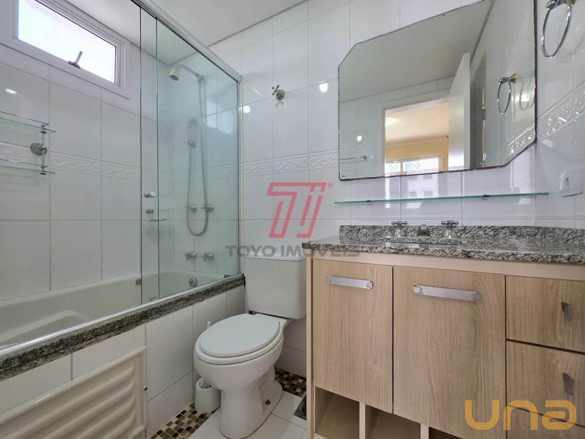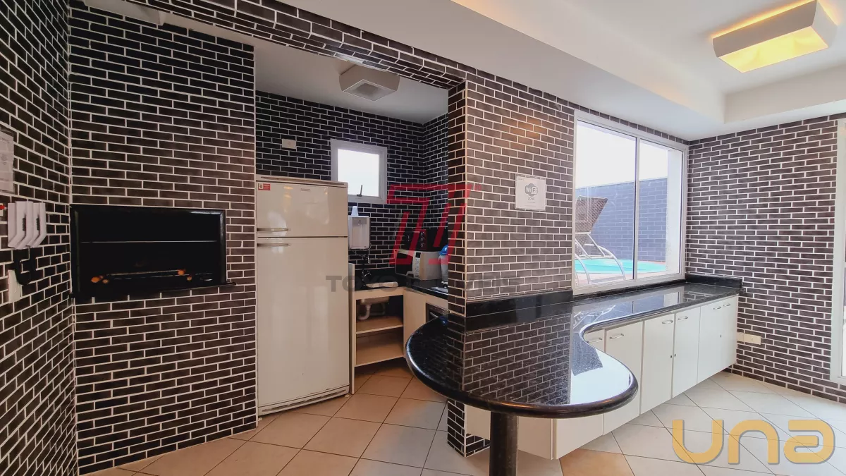 Apartamento de frente, 7º andar, contendo 3 dormitórios, sendo 1 suíte, sala para 2 ambientes, sacada com churrasqueira à carvão, banheiros da suíte e social com box em vidro temperado, armário e espelho, cozinha com armário embutido, área de serviço com armário e uma vaga de garagem individual e coberta.