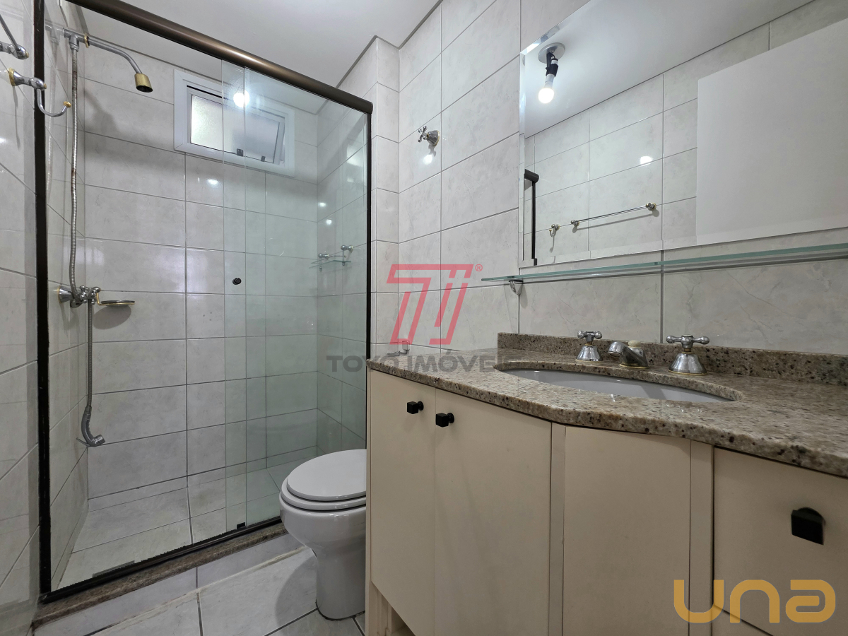 Apartamento de frente, 7º andar, contendo 3 dormitórios, sendo 1 suíte, sala para 2 ambientes, sacada com churrasqueira à carvão, banheiros da suíte e social com box em vidro temperado, armário e espelho, cozinha com armário embutido, área de serviço com armário e uma vaga de garagem individual e coberta.