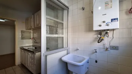 Contendo 2 dormitórios, sendo 1 suíte, sala para 2 ambientes com sacada, cozinha com armário, banheiro social e da suíte com box acrílico e espelho, área de serviço com aquecedor a gás e uma vaga de garagem individual.