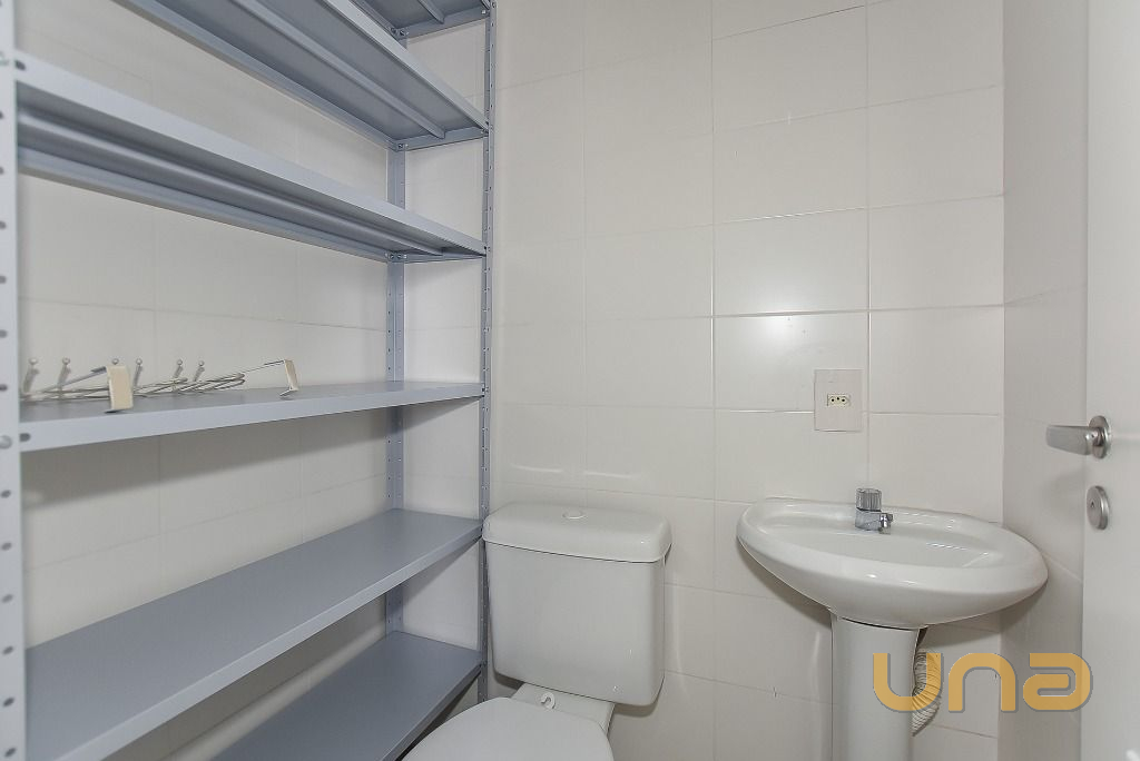 - Área de serviço com tanque, central de gás e banheiro de serviço.