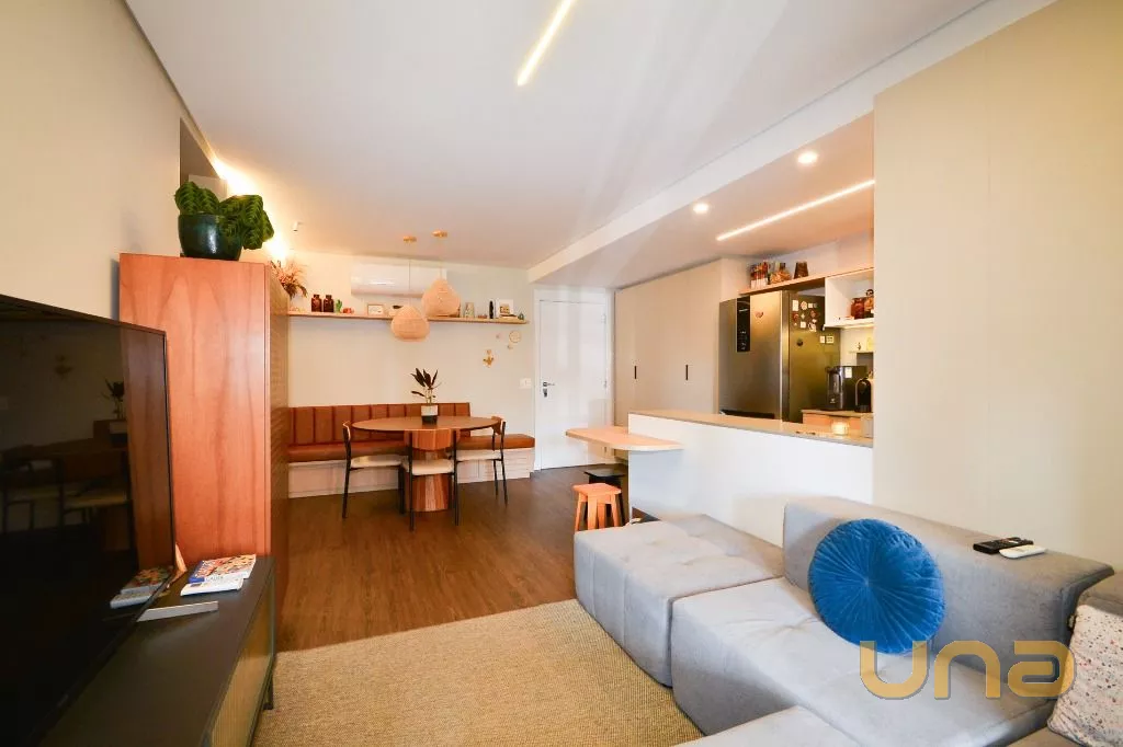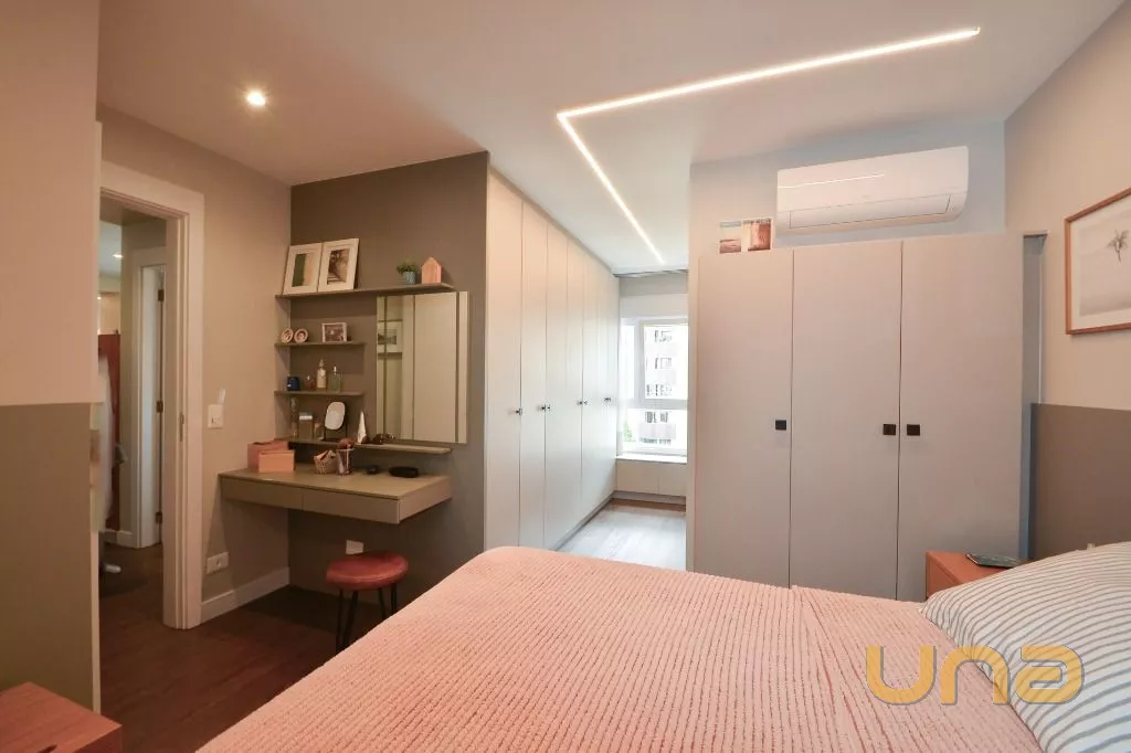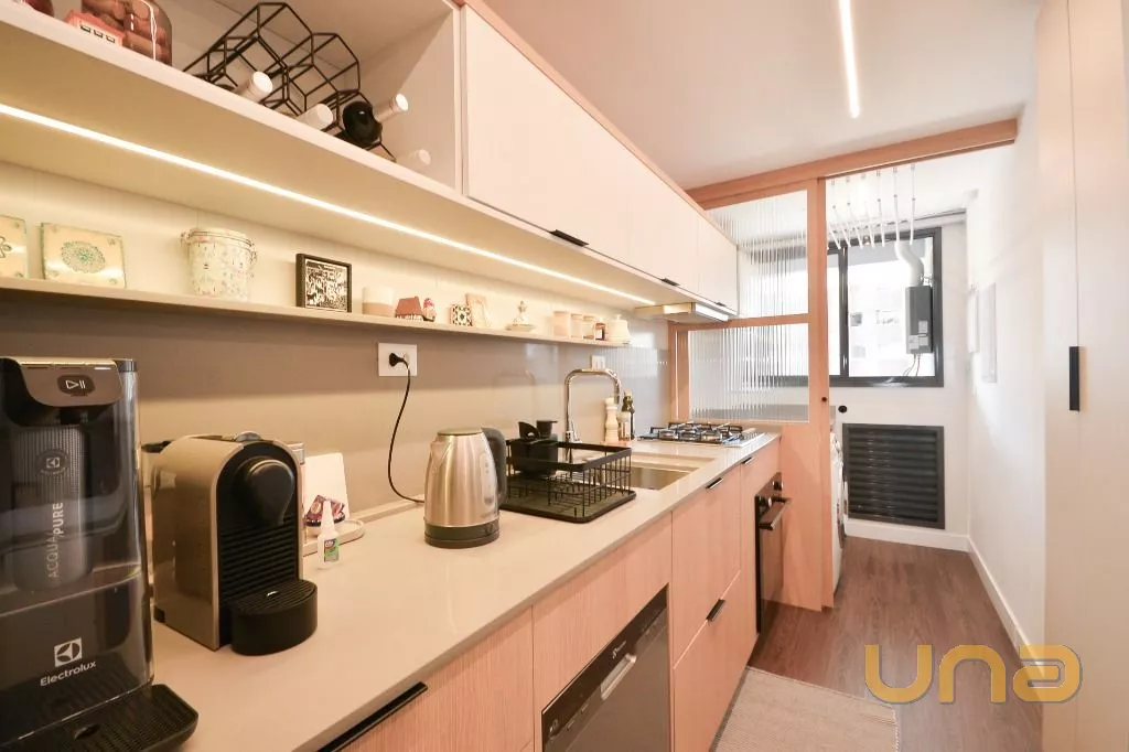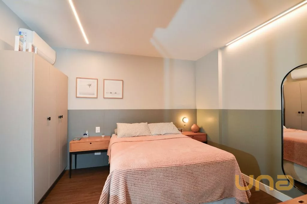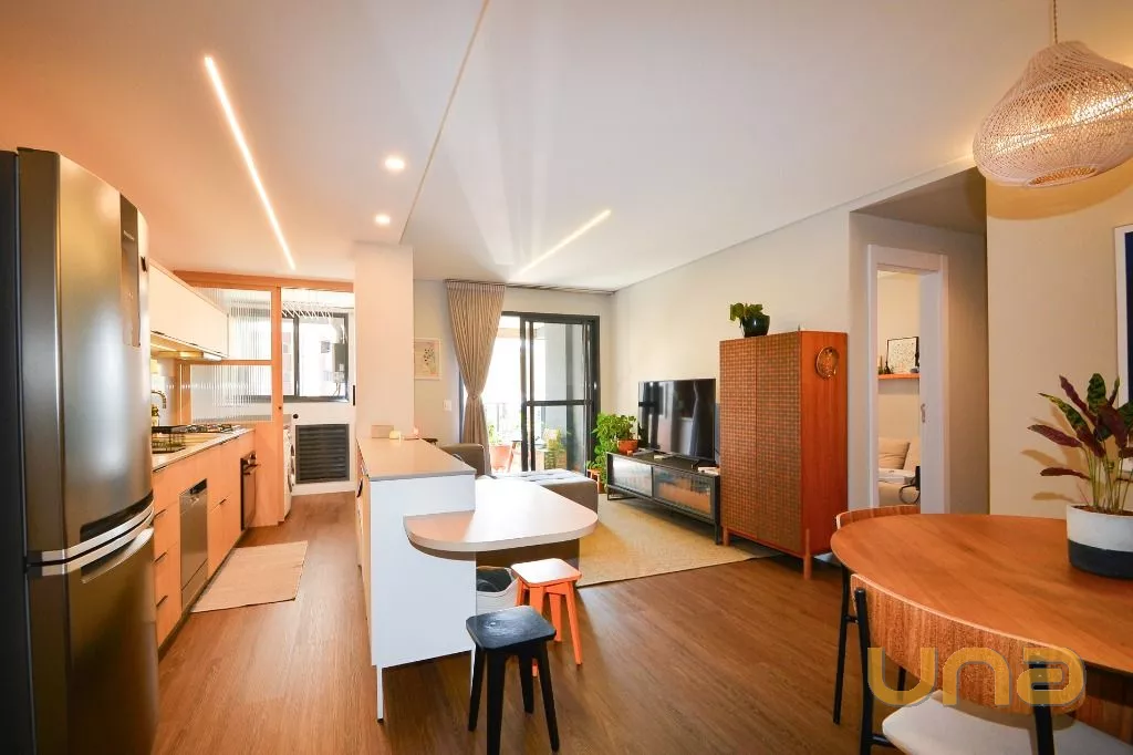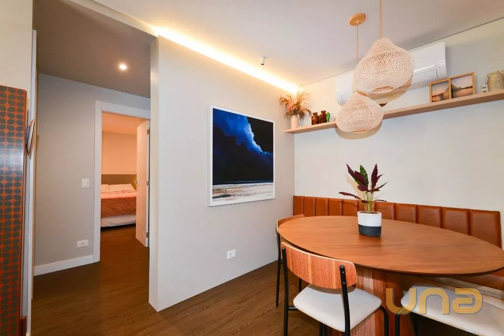 Apartamento com 2 quartos, sendo 1 suíte, totalmente mobiliado, com móveis planejados que garantem um ótimo aproveitamento de espaço. Por ser uma unidade de face sudoeste, conta com iluminação em LED projetada para proporcionar a claridade ideal ao imóvel.