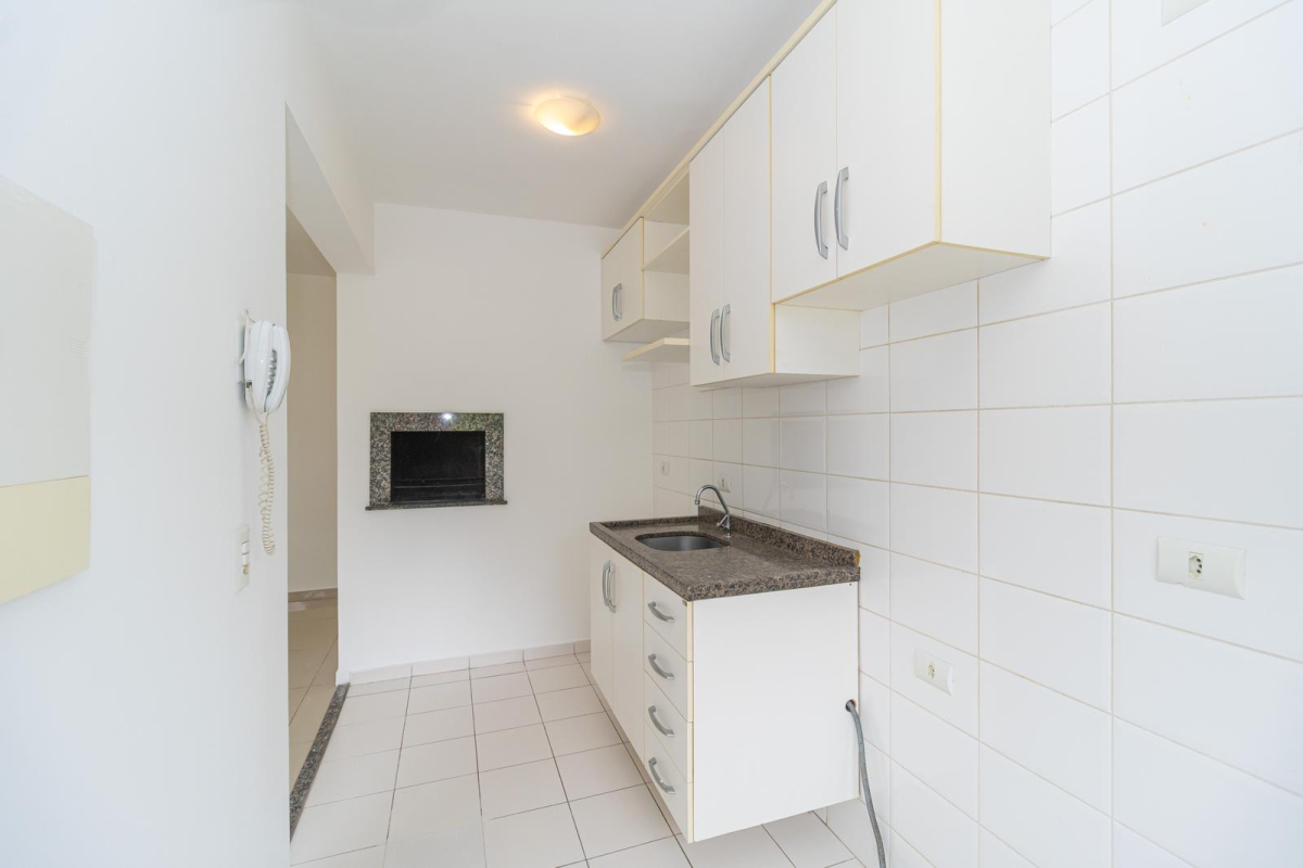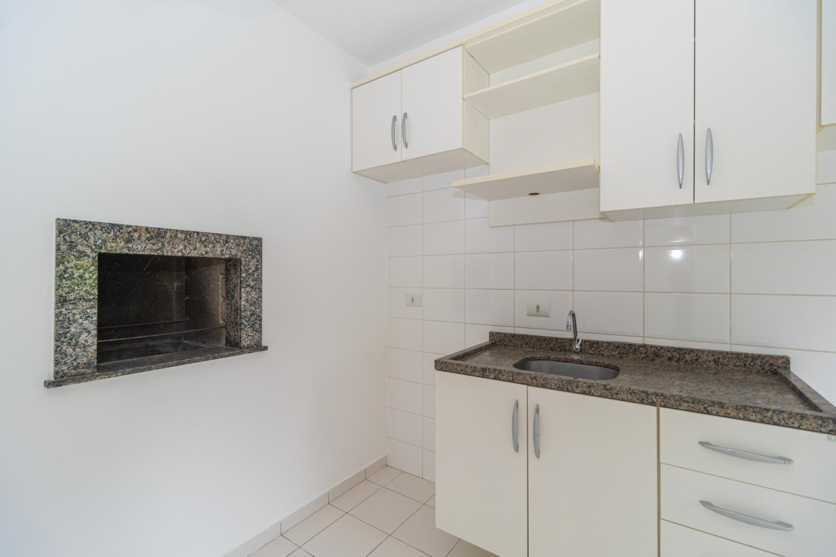- Cozinha estilo americana com churrasqueira e armários;