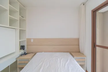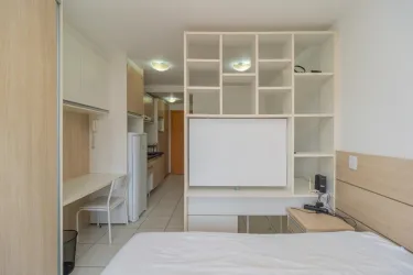 O studio conta com planta funcional e ambientes integrados, otimizando o espaço e proporcionando mais comodidade no dia a dia.