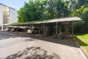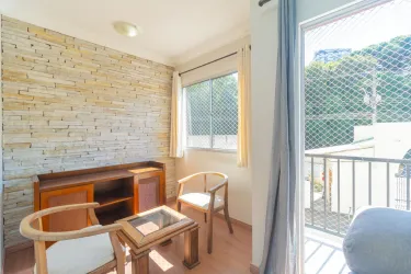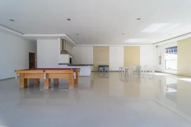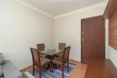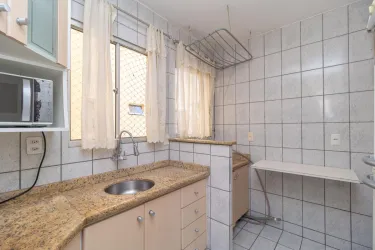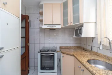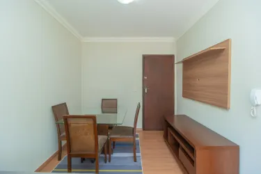O imóvel conta com sala para dois ambientes, equipada com sofá, mesa de jantar e espaço de apoio, proporcionando um ambiente agradável para o dia a dia. A cozinha dispõe de armários, fogão, micro-ondas e geladeira.