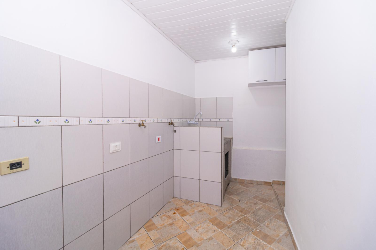- Cozinha com armários, espaço para fogão e coifa