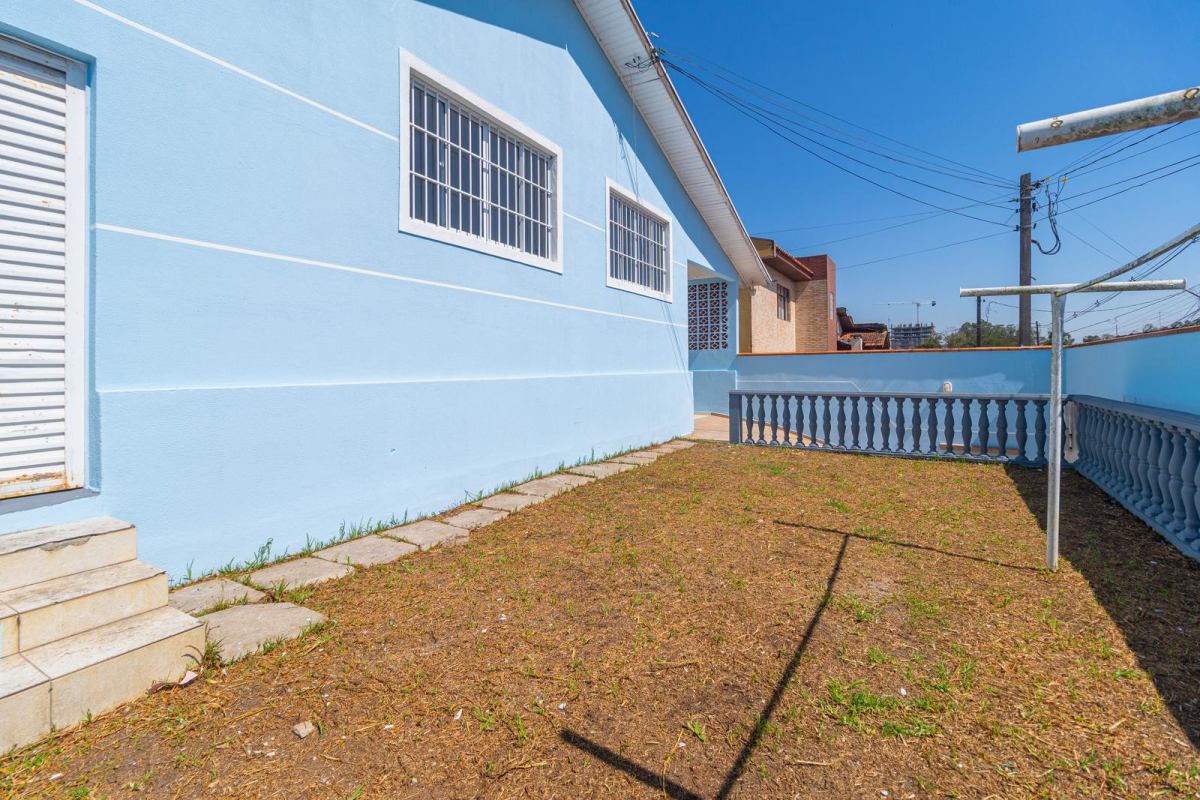 - Quintal amplo na entrada, parte em grama e parte na cerâmica.