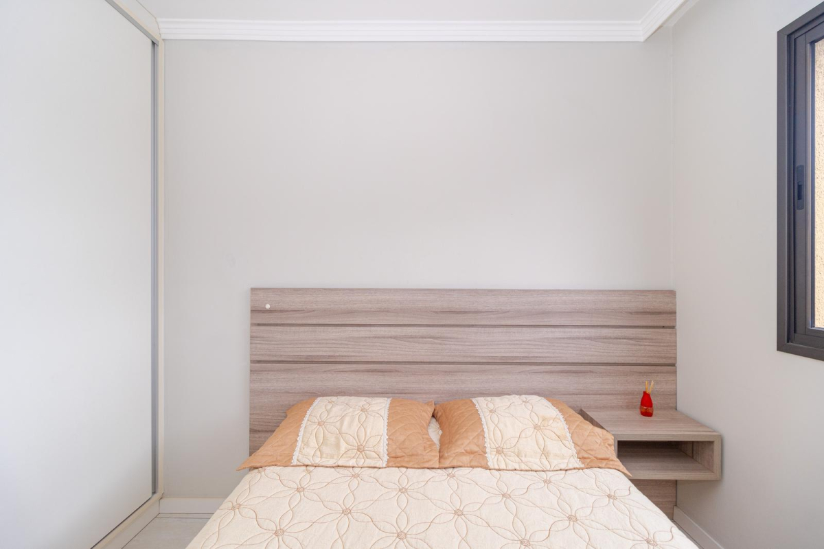 - 2 quartos, 1 com armário, cabeceira e cama de casal e painel para TV, outro com um aparador,