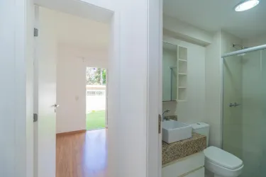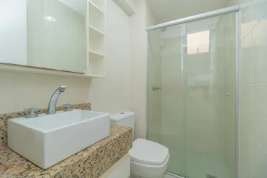 - Banheiro com armário, espelho e box em blindex,