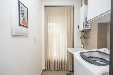 - Lavanderia em anexo a cozinha, possui armário, tanque e máquina de lavar,