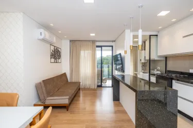 Apartamento mobiliado com 2 vagas de garagem no Cabral disponível para locação.