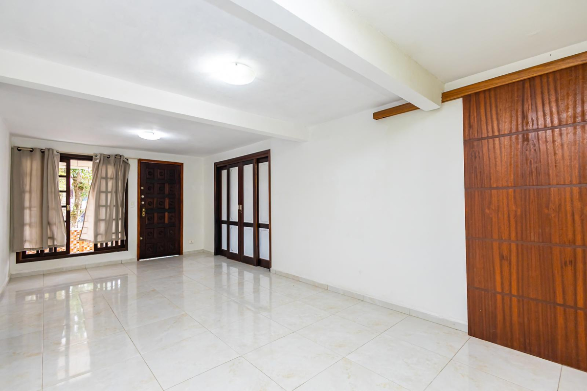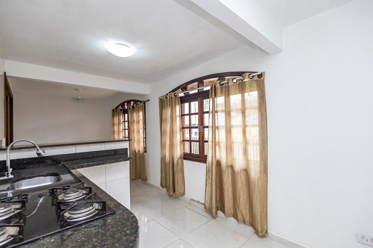 Imóvel com grades nas janelas e quatro vagas de garagem (duas cobertas).