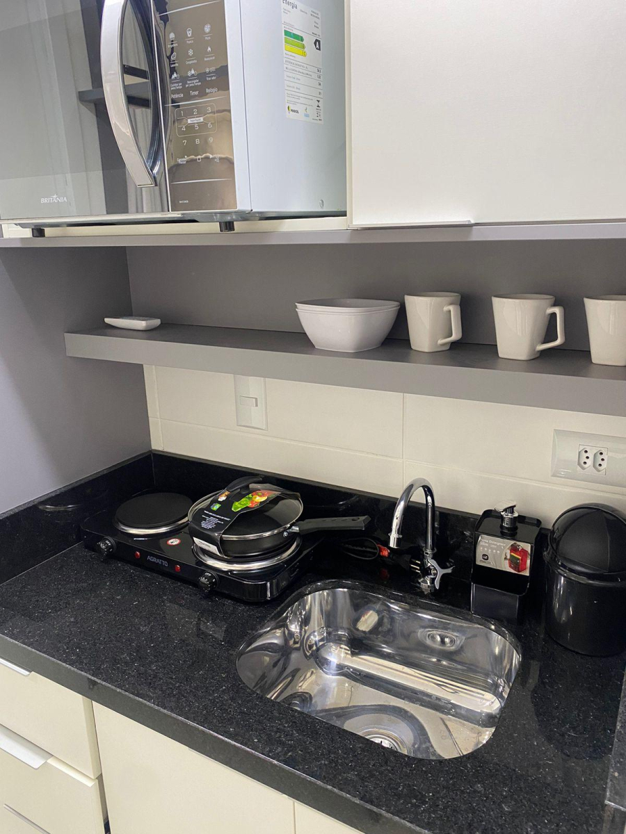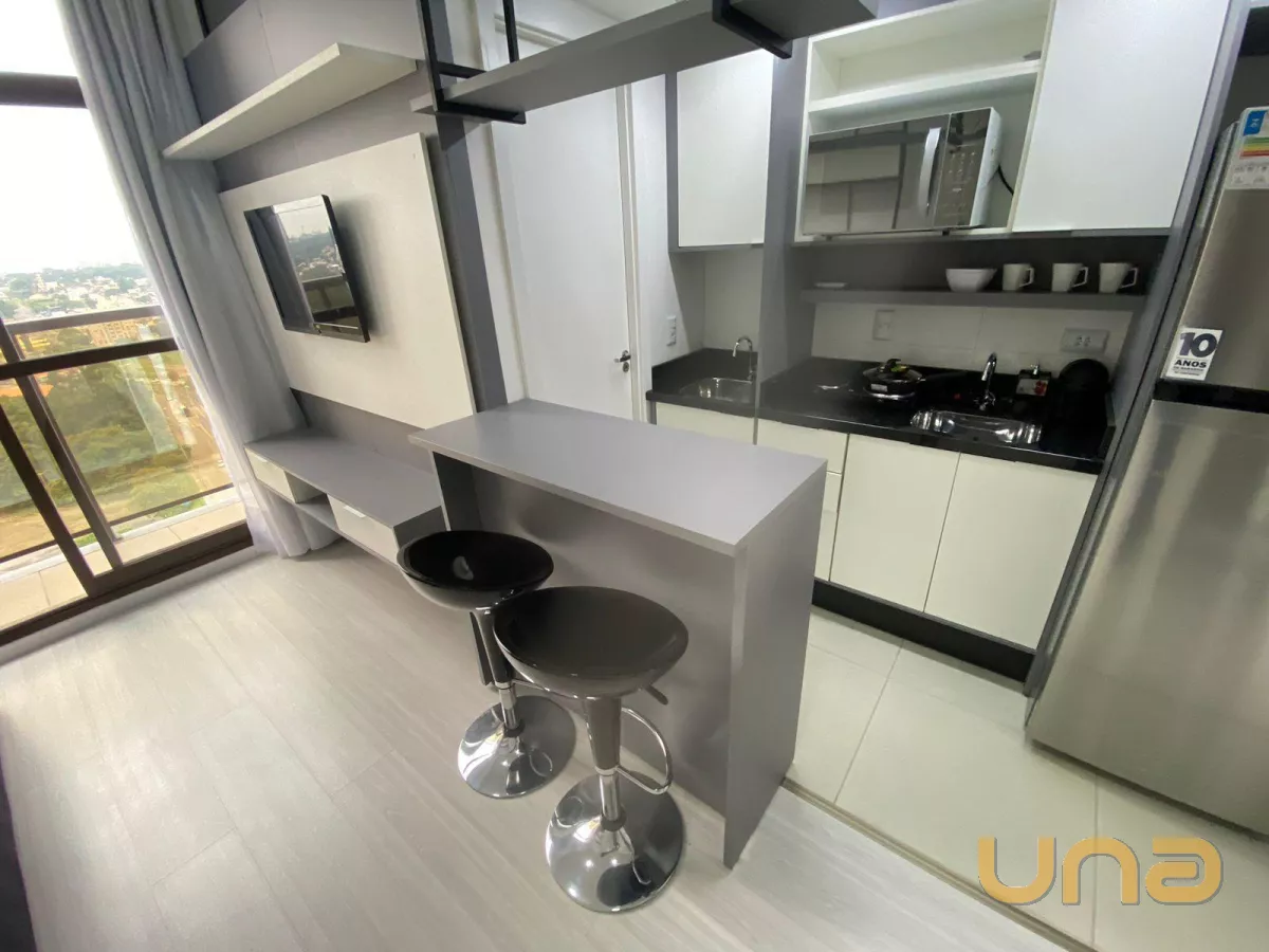Detalhes: Studio pronto para morar, todo mobiliado no Ecoville, próximo ao Park Shopping Barigui. O studio já está com armários, sofá, eletros, louças, roupas de cama, ar condicionado. Conta com sacada com churrasqueira a carvão e uma linda vista com o sol da manhã. O condomínio foi muito bem elaborado para facilitar o seu dia-a-dia com academia, lavanderia, espaço para coworking com 2 salas de reunião, espaço gourmet com churrasqueira, salão de festas, bicicletário, rooftop, quiosques com churrasqueira e portaria 24 horas. ***Possibilidade de comprar o studio com 01 (uma) vaga de garagem coberta e livre. Valor do studio com vaga de garagem: R$ 435.000,00.***