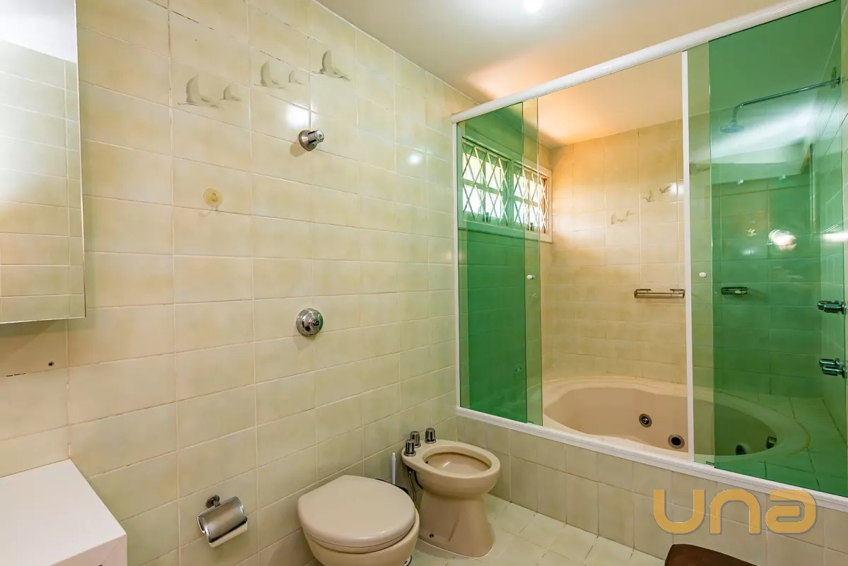 1 suíte com armário, closet, banheira de hidromassagem e sacada