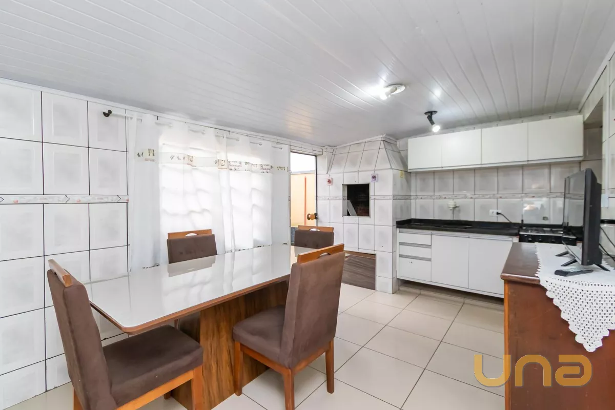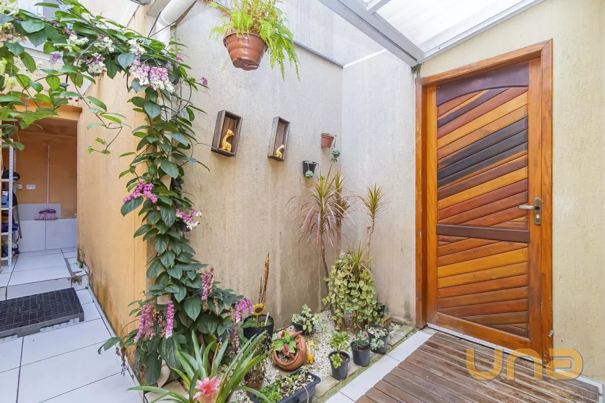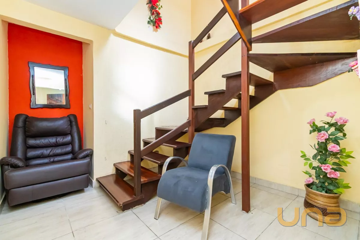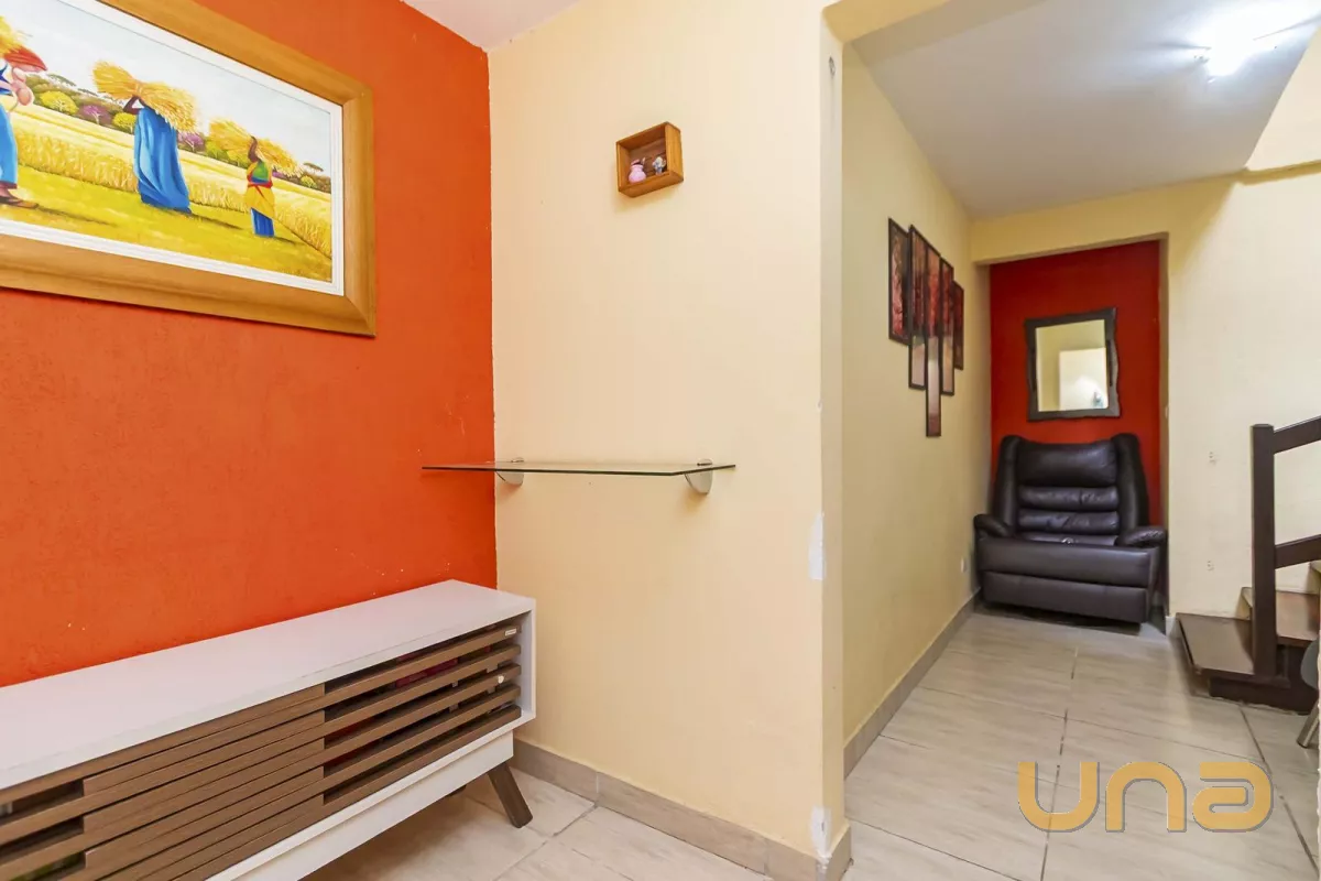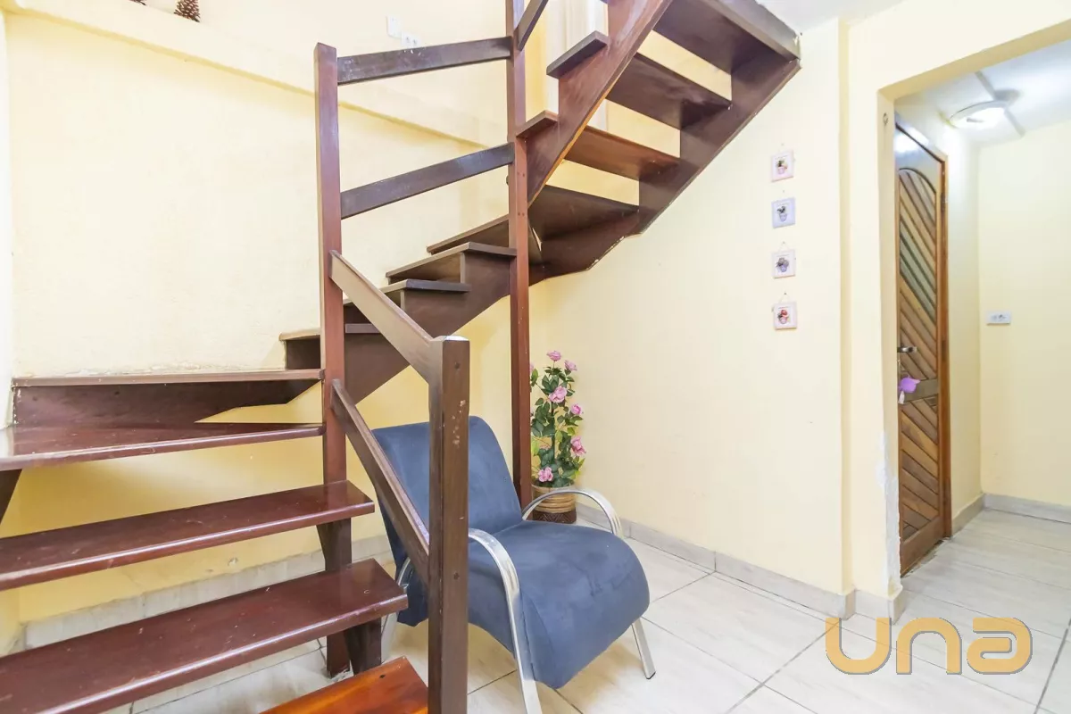 Sobrado de frente para a rua, composto por uma sala ampla interligada com a sacada, três quartos (sendo uma suíte) no piso inferior, banheiro social, hall de entrada, cozinha com churrasqueira, lavanderia e duas vagas de garagem sendo uma coberta e outra descoberta.