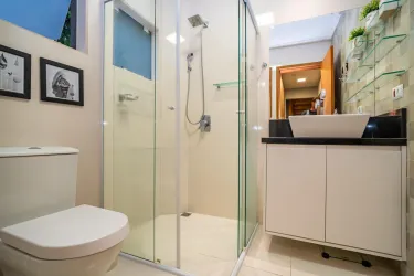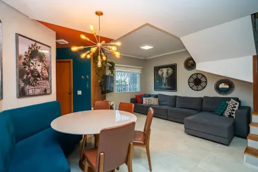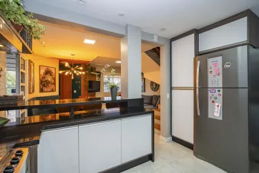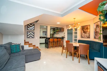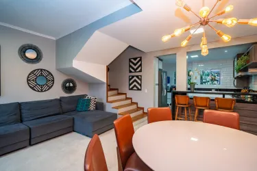 No piso térreo uma integração perfeita entre os ambientes, sala de estar e jantar, lavabo, cozinha aberta ampla e com bastante armários.