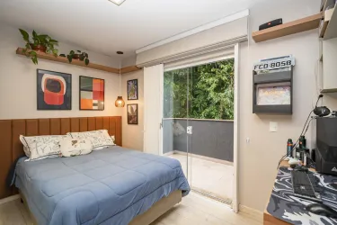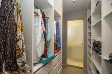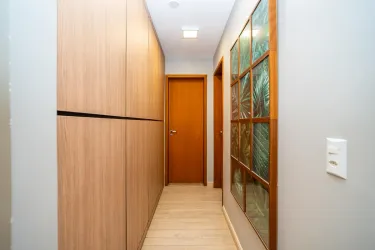 No segundo piso 1 suíte com closet, ar condicionado e varanda, rouparia no corredor e mais 3 quartos, amplos e com armários planejados.