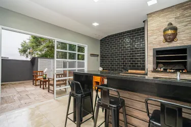 E para reunir a família e amigos, um belo espaço com churrasqueira, bem estruturado, também com uma área descoberta na lateral.