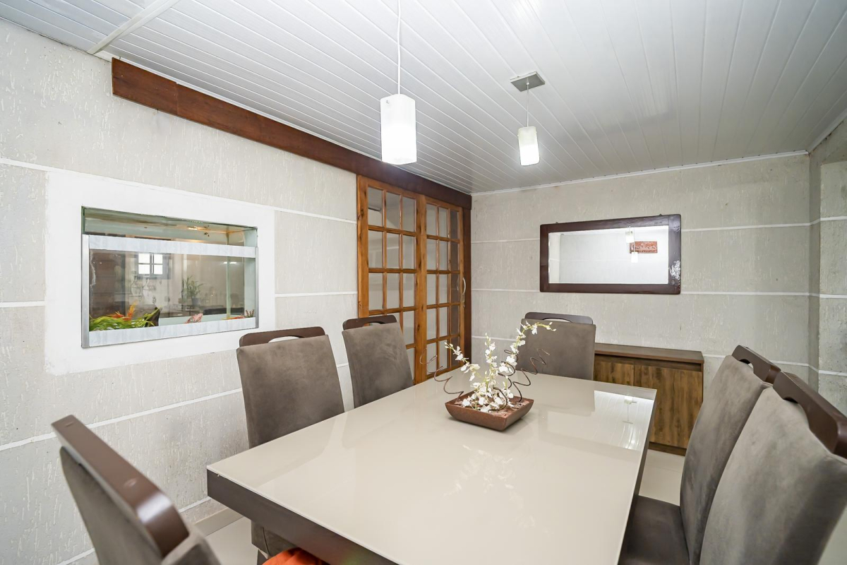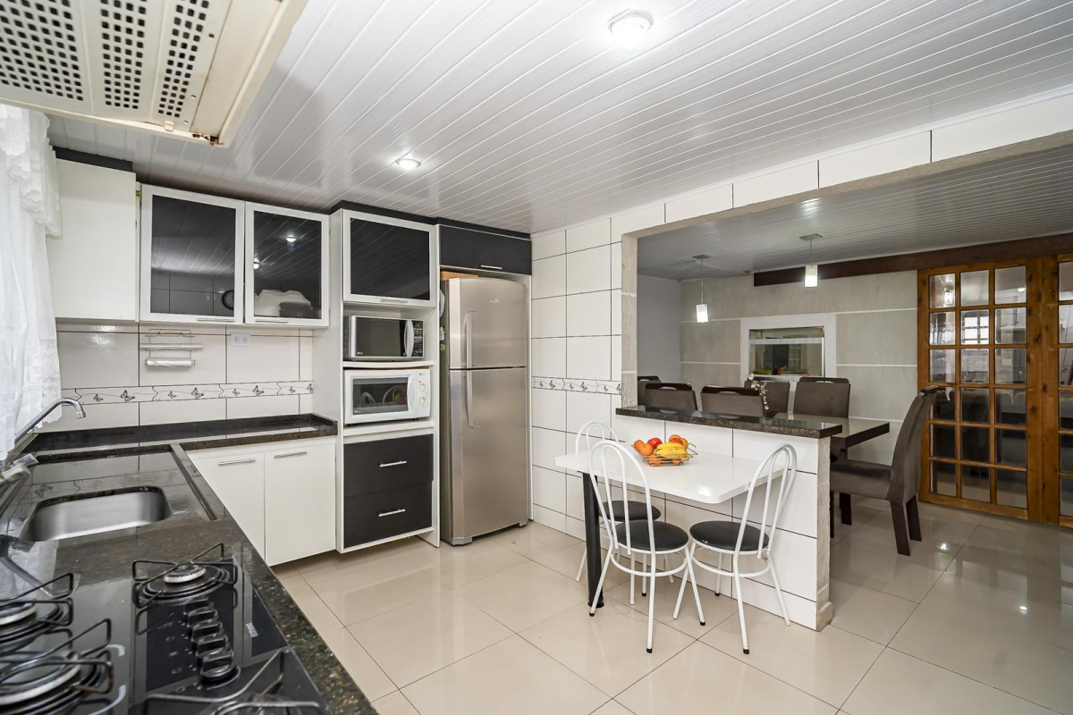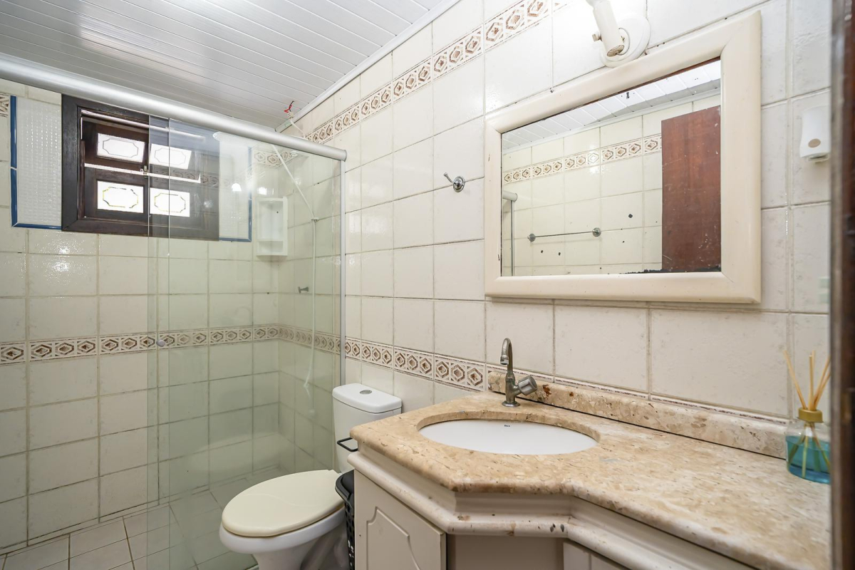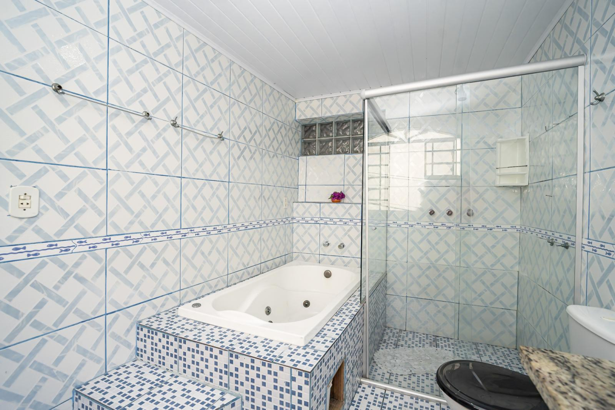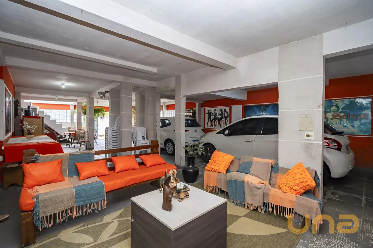 No subsolo possui um amplo espaço com churrasqueira, fogão à lenha, lavanderia, deck e 4 vagas de garagens.