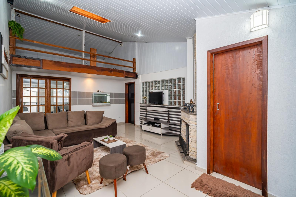 A casa principal possui uma sala de estar com pé direito alto, lareira e lavabo; também conta com uma cozinha ampla integrada com a sala de jantar. Além disso, possui três quartos sendo uma suíte máster com sacada e hidromassagem.