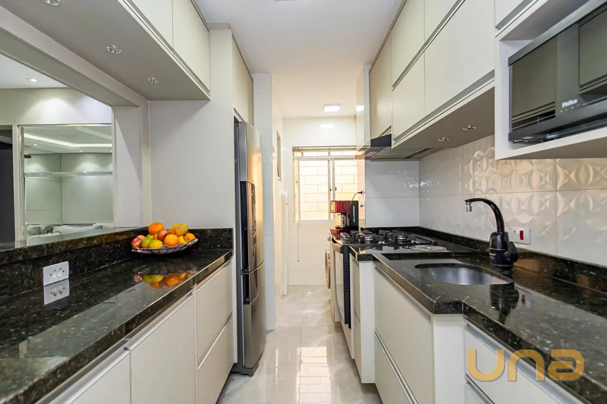 O apartamento conta com 3 quartos, sendo 1 suíte, proporcionando privacidade e aconchego. Os ambientes são integrados, destacando a moderna sala de estar e a sala de jantar, perfeitas para receber amigos e familiares. A cozinha americana, planejada e equipada com armários, é um convite para momentos de descontração e gastronomia.