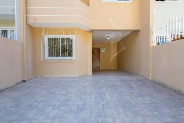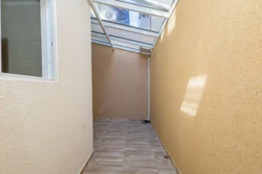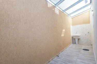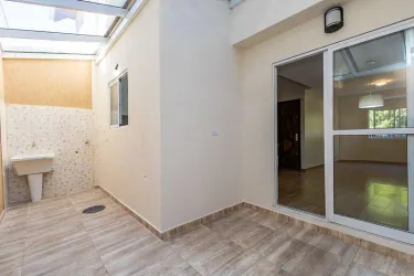 Na parte externa, o sobrado conta com um quintal privativo e coberto com vidro e garagem para 3 carros, sendo 1 vaga coberta e duas descobertas.