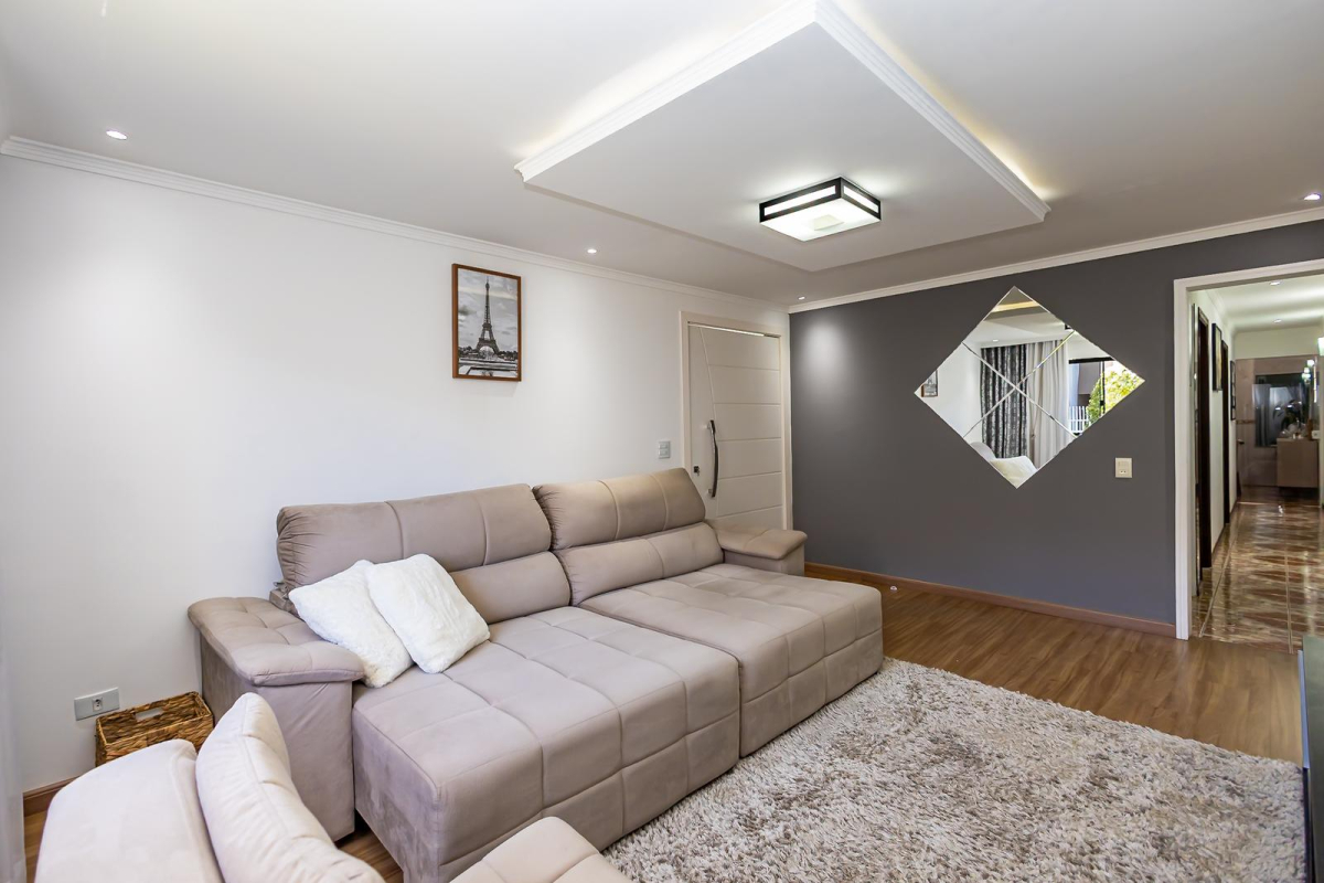 Sala ampla com piso novo.