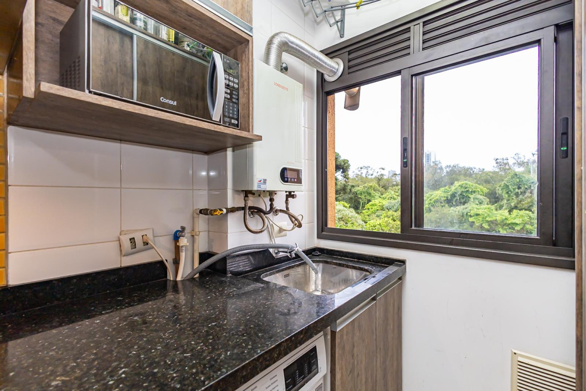Com uma disposição inteligente, o apartamento conta com 2 quartos, sendo uma suíte, perfeita para garantir sua privacidade e conforto. Os ambientes são bem iluminados e arejados, proporcionando uma sensação acolhedora. A cozinha, equipada com armários planejados, oferece funcionalidade e estilo, ideal para quem aprecia momentos gastronômicos. Vista definitiva para o bosque.