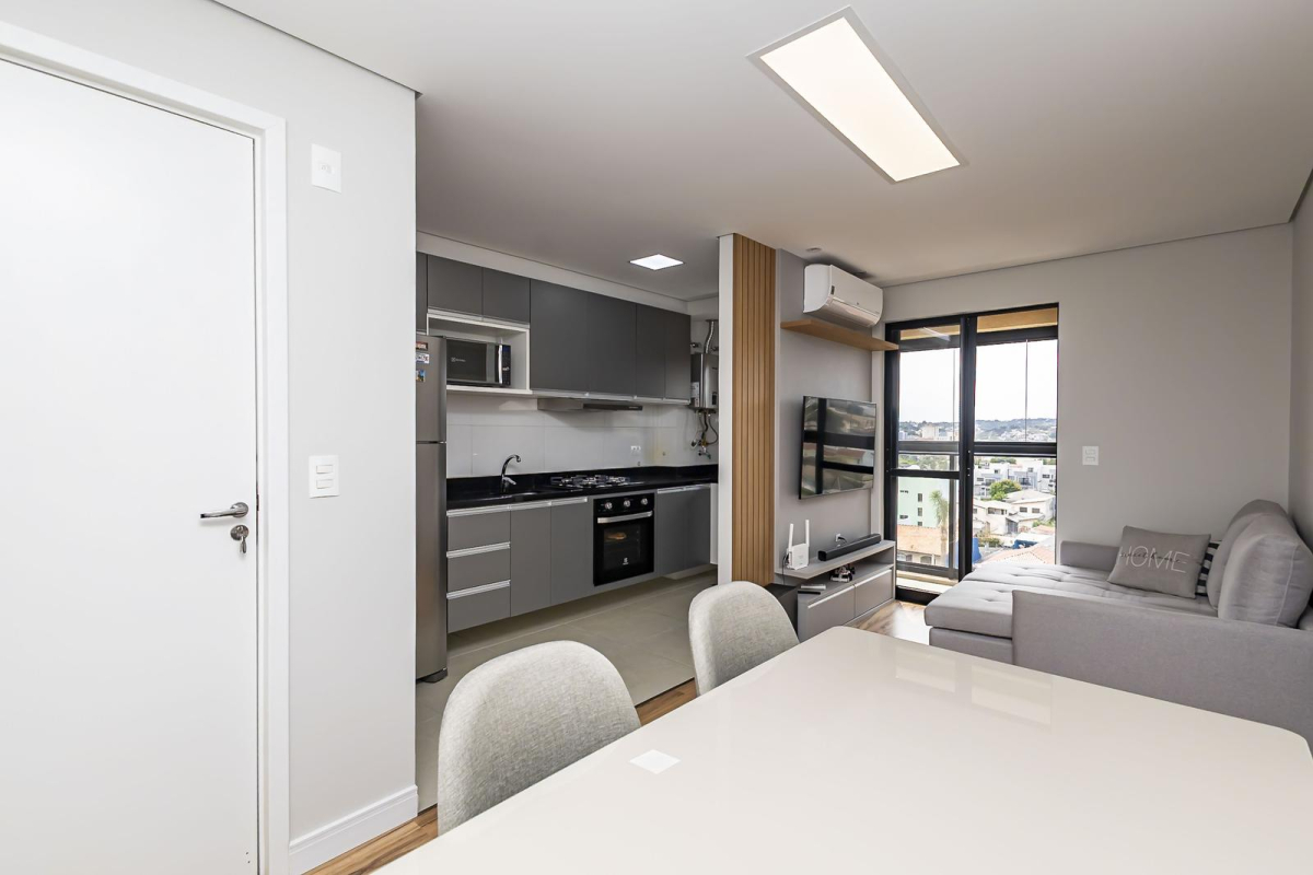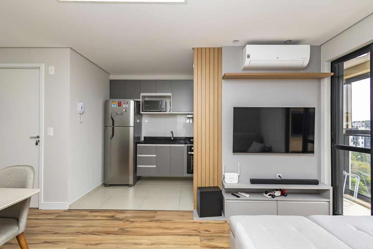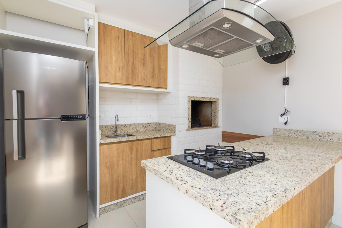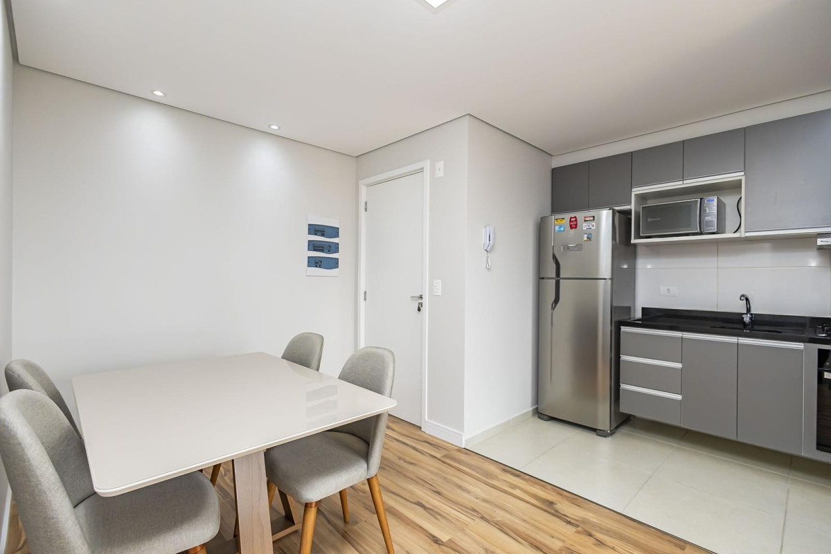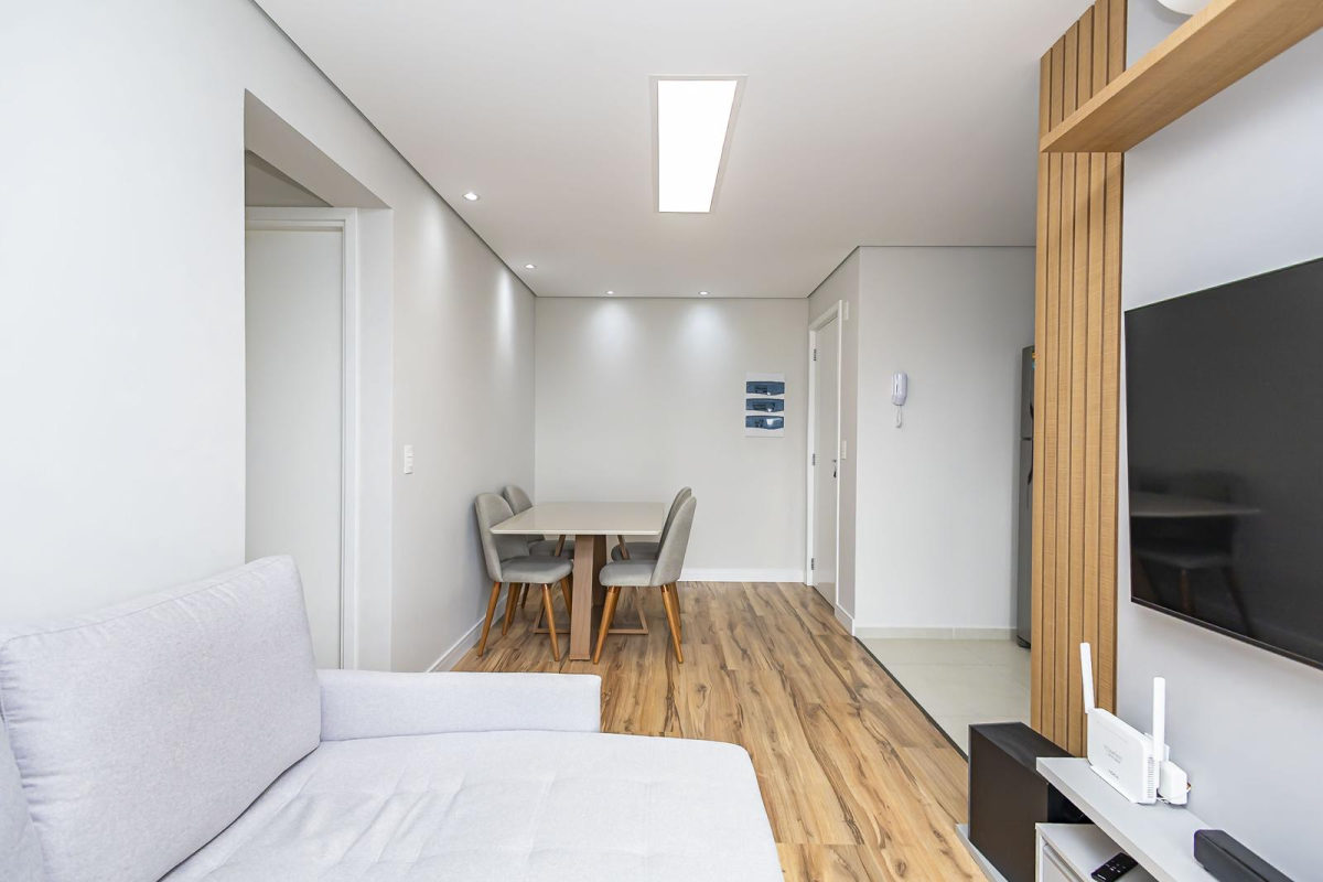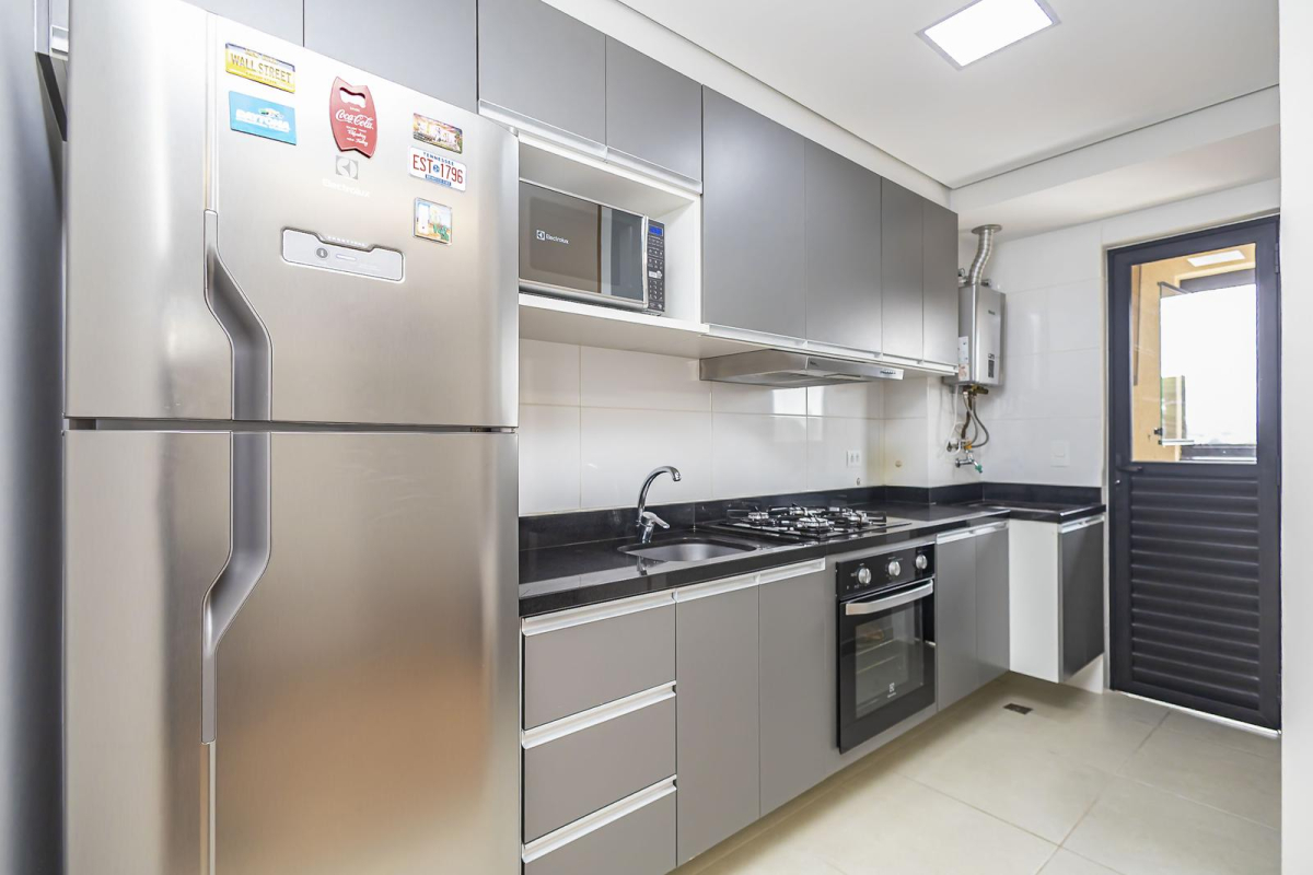 O imóvel todo mobiliado com pouco tempo de uso possui dois quartos, banheiro, sala para dois ambientes com ar condicionado, sacada com churrasqueira, aquecimento à gás e vaga coberta.